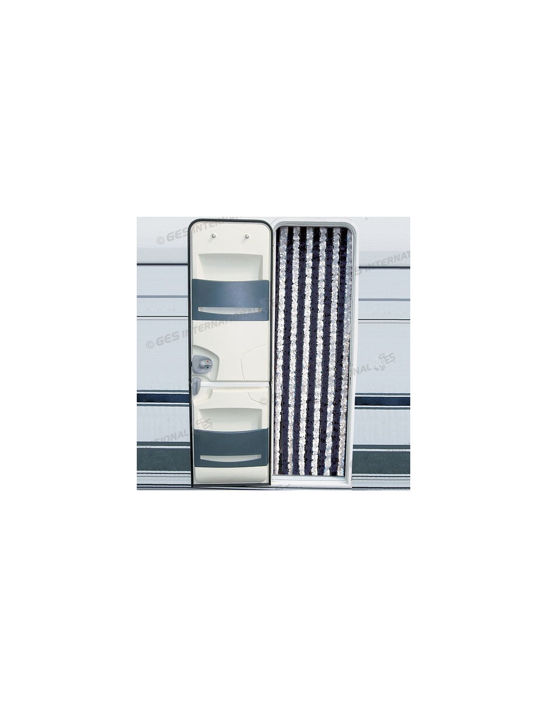 fibra de polipropileno 100% reciclable. Cortina ligera, agradable al tacto, silenciosa, anti-moscas, fácilmente lavable.