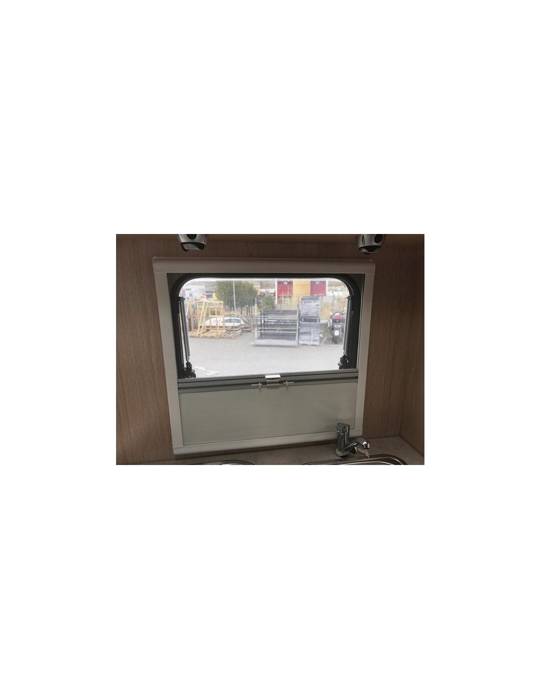El oscurecedor/mosquitero se compone de un enrollador inferior de lona oscurecedor con film de aluminio en el exterior para reflejar el sol, un enrollador superior de mosquitera, dos guías laterales cortadas a medida. Las dos hojas se pueden maniobrar mediante una práctica manija de bloqueo, arrastre y desbloqueo.