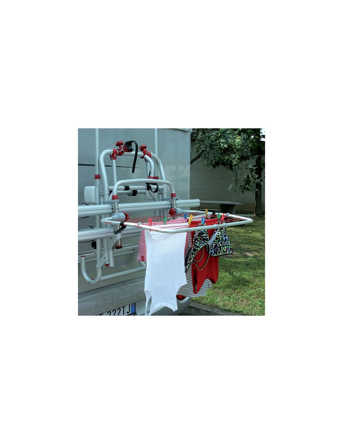 Tendedero adicional diseñado para un montaje rápido en las baldas abatibles de los Carry-Bikes Fiamma y portabicicletas de otras marcas con tubo de 35 mm de diámetro.