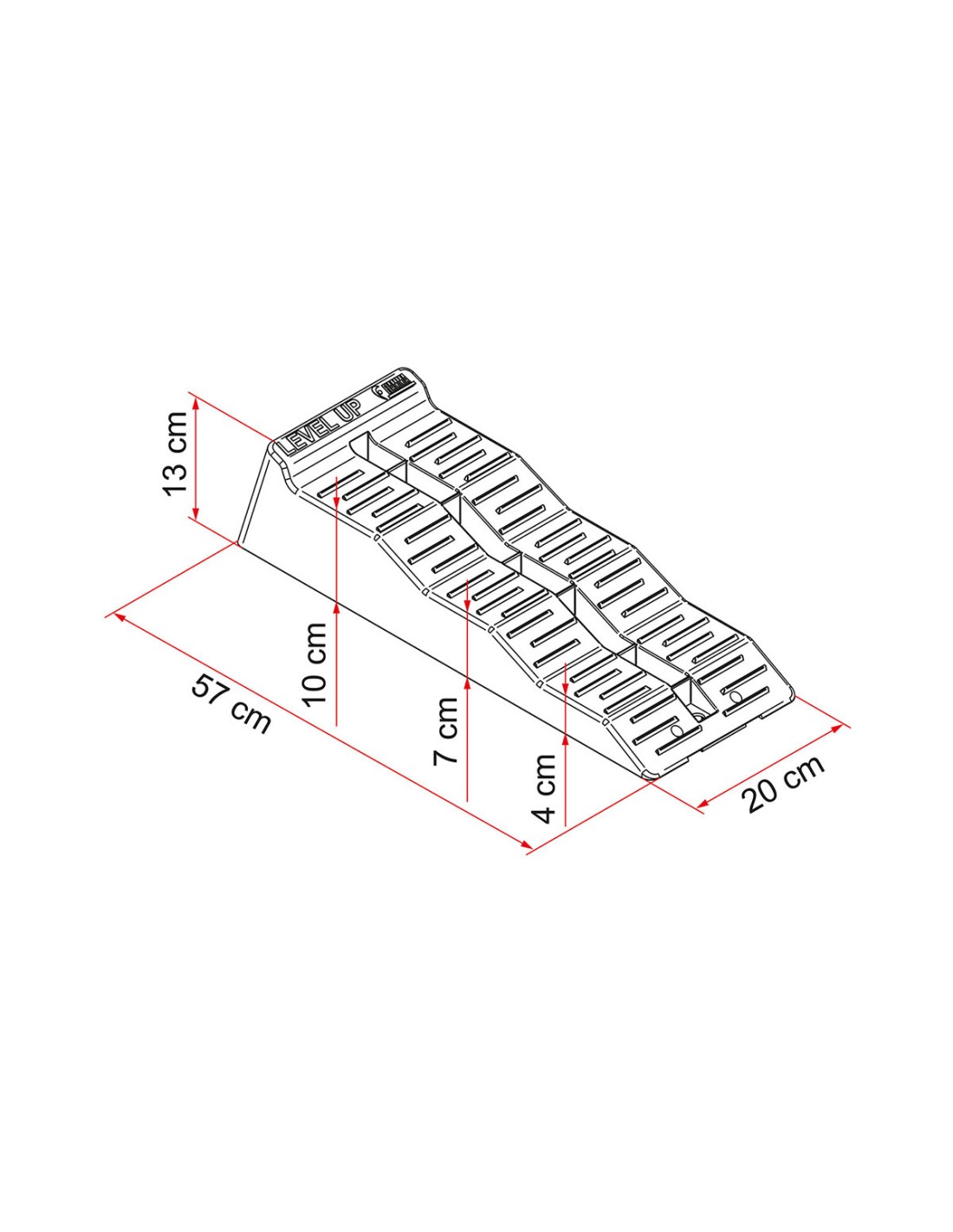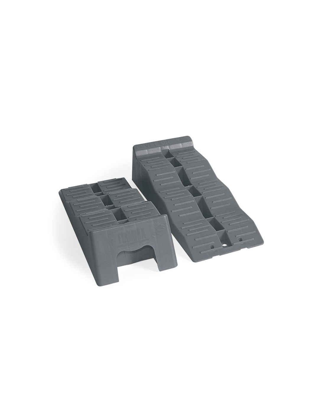 Par de placas moleteadas, especialmente diseñadas para fijarse fácilmente al fondo del Level Up Fiamma con los tornillos suministrados: aumentan la tracción, evitando resbalones en superficies lisas y hundimientos en fondos blandos como arena o barro.