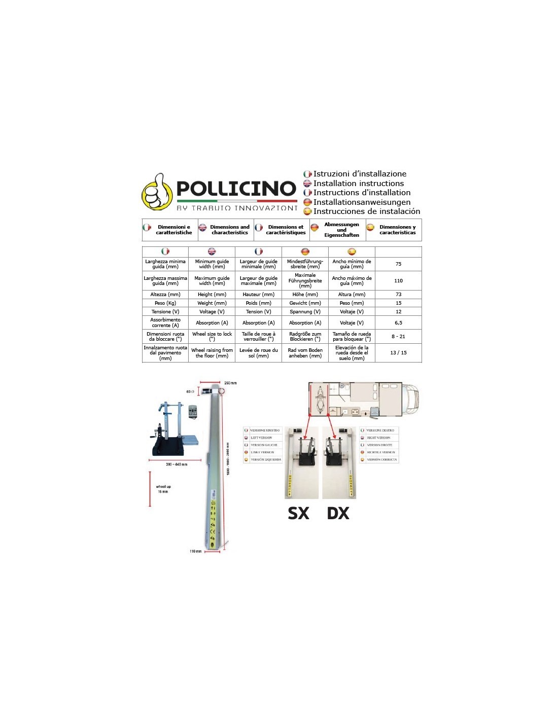 Manual de moto Pollicino 200 cm Derecho RH para carga en compartimento de almacenamiento de camper