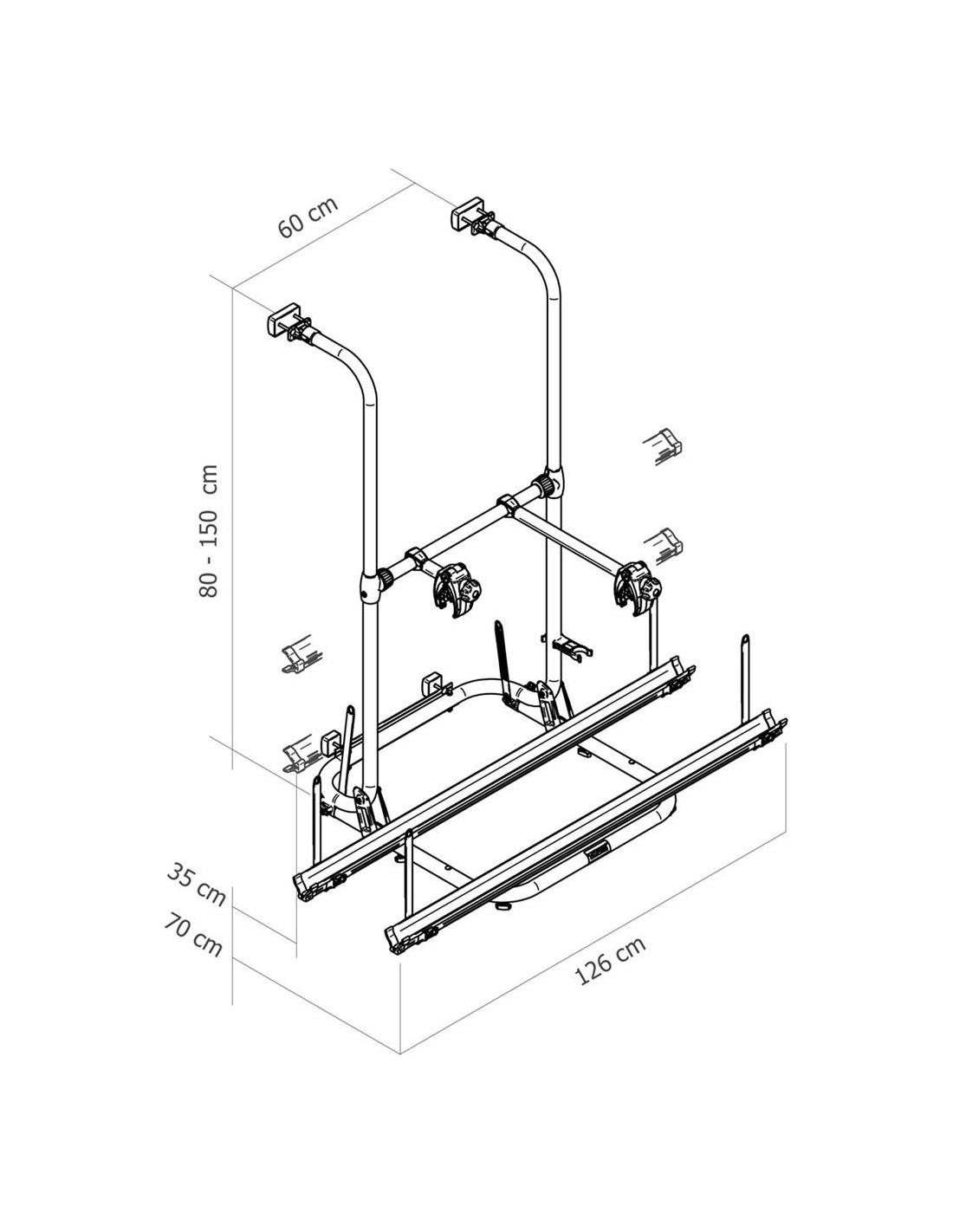 Portabicicletas Thule - Thule Sport G2 W150 Hobby - 307128 Recomendado para montaje en pared trasera. Para caravanas Hobby a partir del año 2004. Peso: 6,8 kg Diseñado para 2 bicicletas, ampliable a 3 Peso máximo de carga: 50 kg Peso máximo de carga por pista: 19 kg Adecuado para autocaravanas y caravanas. Para aficionados desde 2004 Completo con pista...