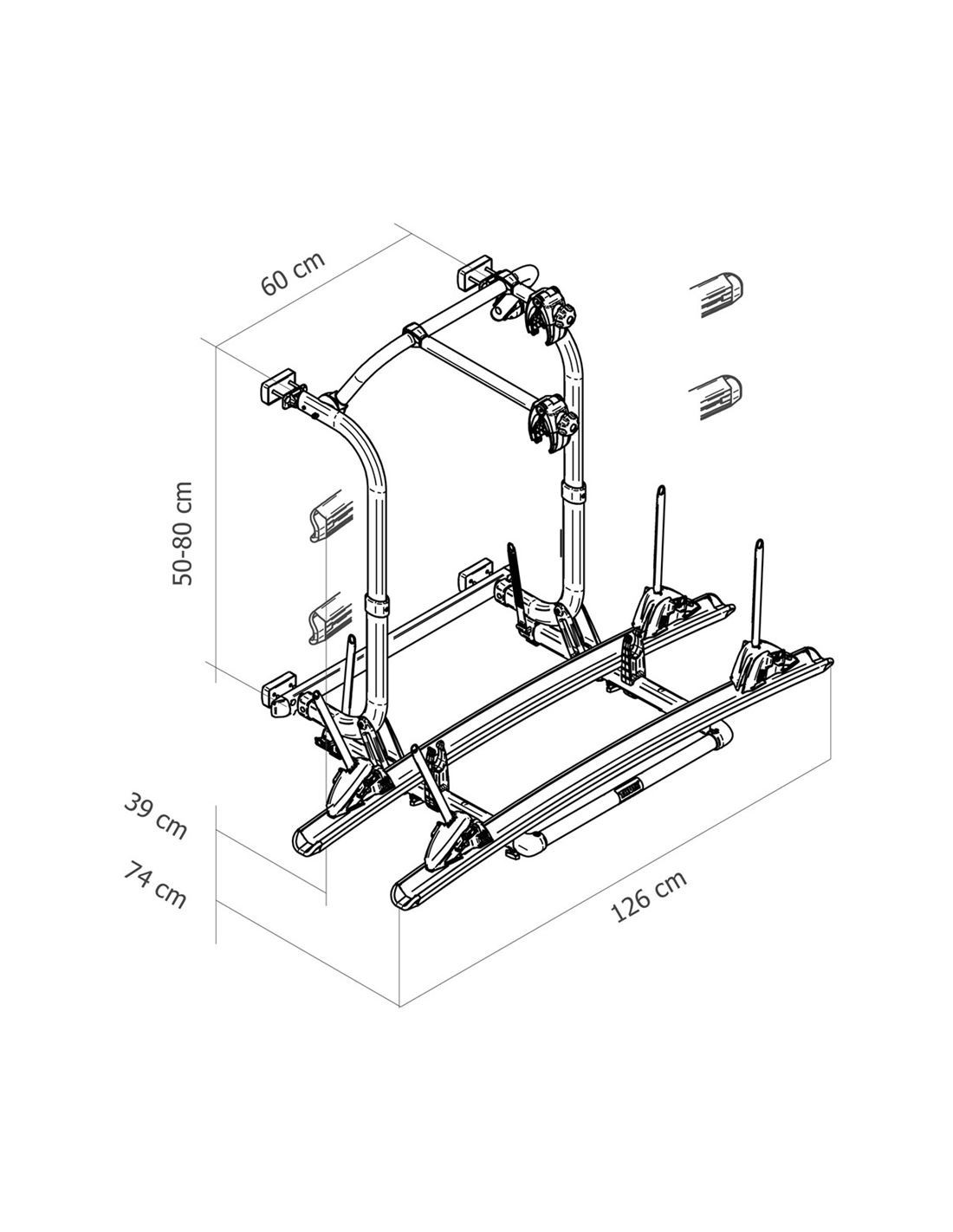 Transporta hasta 4 bicicletas, perfiles ovalados que aumentan la resistencia y estabilidad. Mayor seguridad gracias al Rack-Lock que evita que las bicicletas se suelten durante la conducción. Posibilidad de montar cualquier tipo de bicicleta en los raíles. Posibilidad de fijación sobre soportes antiguos ya montados.