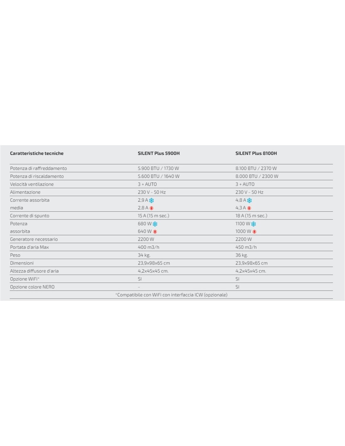 Dos modelos disponibles con diferente potencia frigorífica y ambos equipados con bomba de calor. Funciones Frío, Calor, Ventilador y Automático seleccionables desde mando a distancia y función Temporizador.