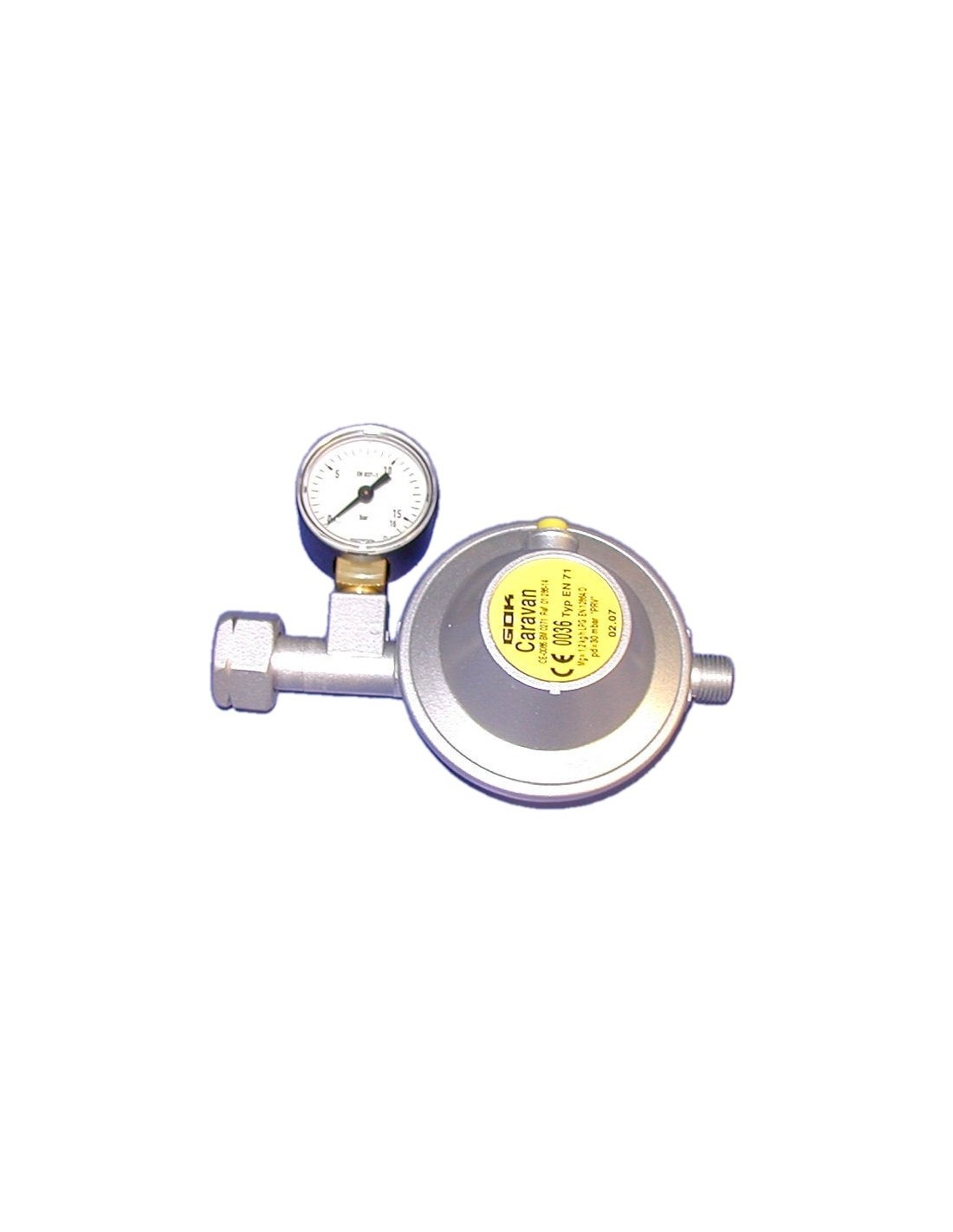 Regulador de gas GOK 0128604 - 30 mbar 1,2 kg Válvula de seguridad APROBADO EN ITALIA