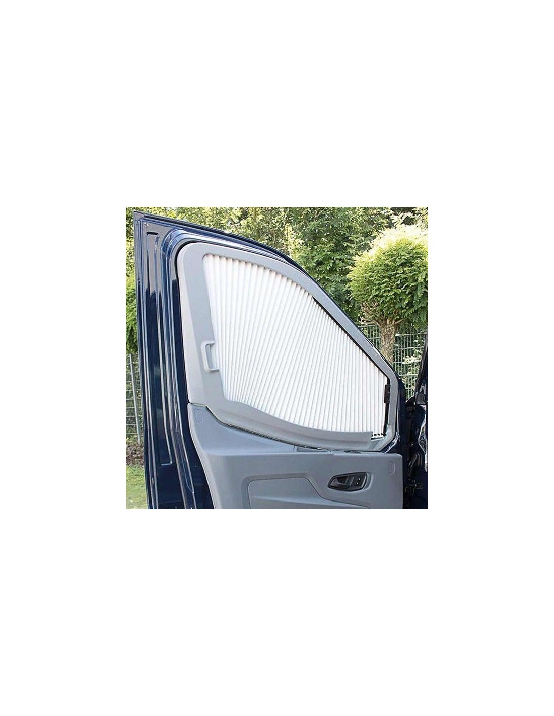 • Cortinas opacas robustas y de alta calidad para ventanas laterales, fijadas a la puerta mediante un marco hecho a medida. Ofrecen una protección óptima frente a miradas indiscretas desde fuera. Además, reducen significativamente la acumulación de calor y la refrigeración.