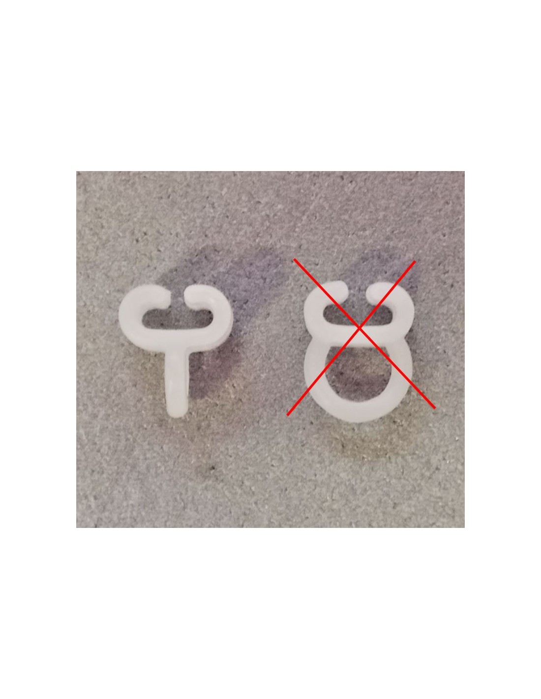 Gancho TRANSVERSAL nylon 20uds. para cortinas con guía en forma de L. Este gancho tiene la fijación para las cortinas a noventa grados respecto al corredero. Consulte nuestro artículo 14311 para ver el gancho paralelo al tobogán.