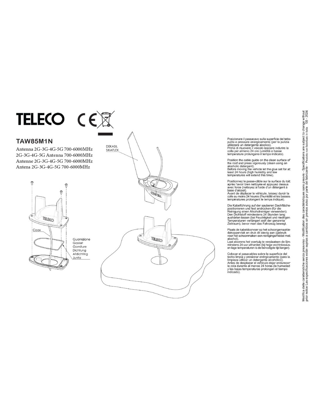 La Teleco TAW85M1N es la antena exterior que se puede conectar a la Teleco WiFi 400, para recibir la señal en el exterior de la caravana/camper o barco.