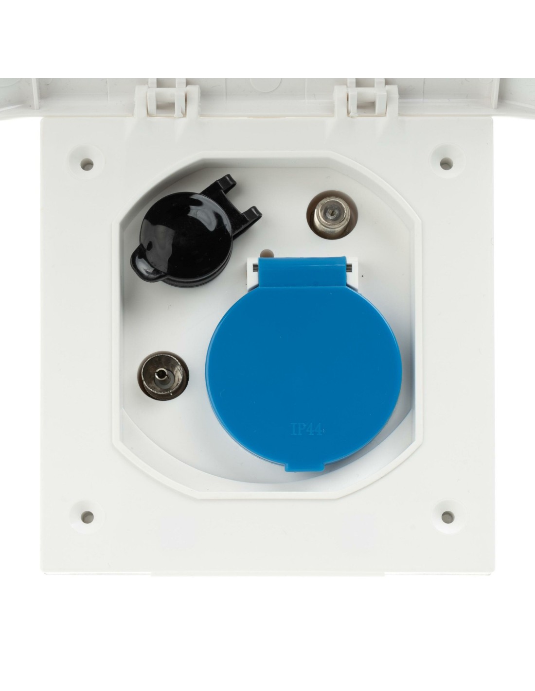 Equipado con toma schuko con solapa, toma DIN, toma TV, toma SAT.