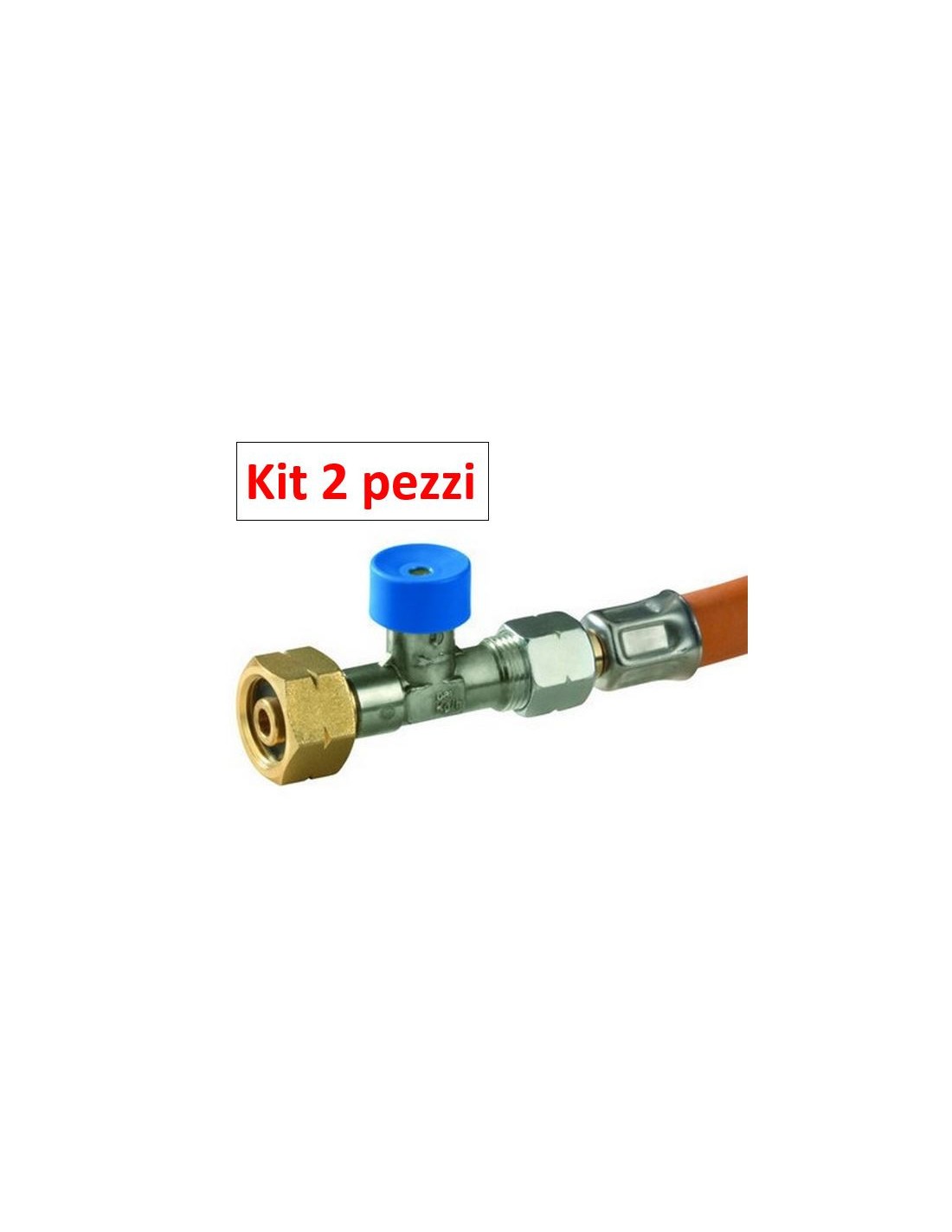Kit 2 piezas - GOK 2025 manguera de goma alta presión AP 75 cm ITALIA conexión y conexión para regulador de gas en el lado opuesto.