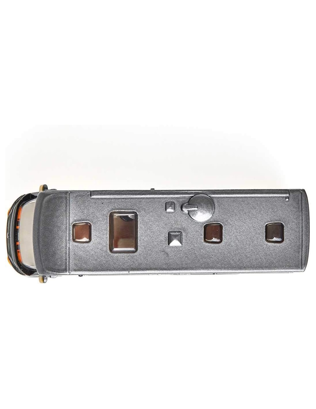 • Diseño estable y robusto gracias al cuerpo de metal, ruedas de goma funcionales, puerta lateral que se abre, enganche de remolque para remolques de la misma escala