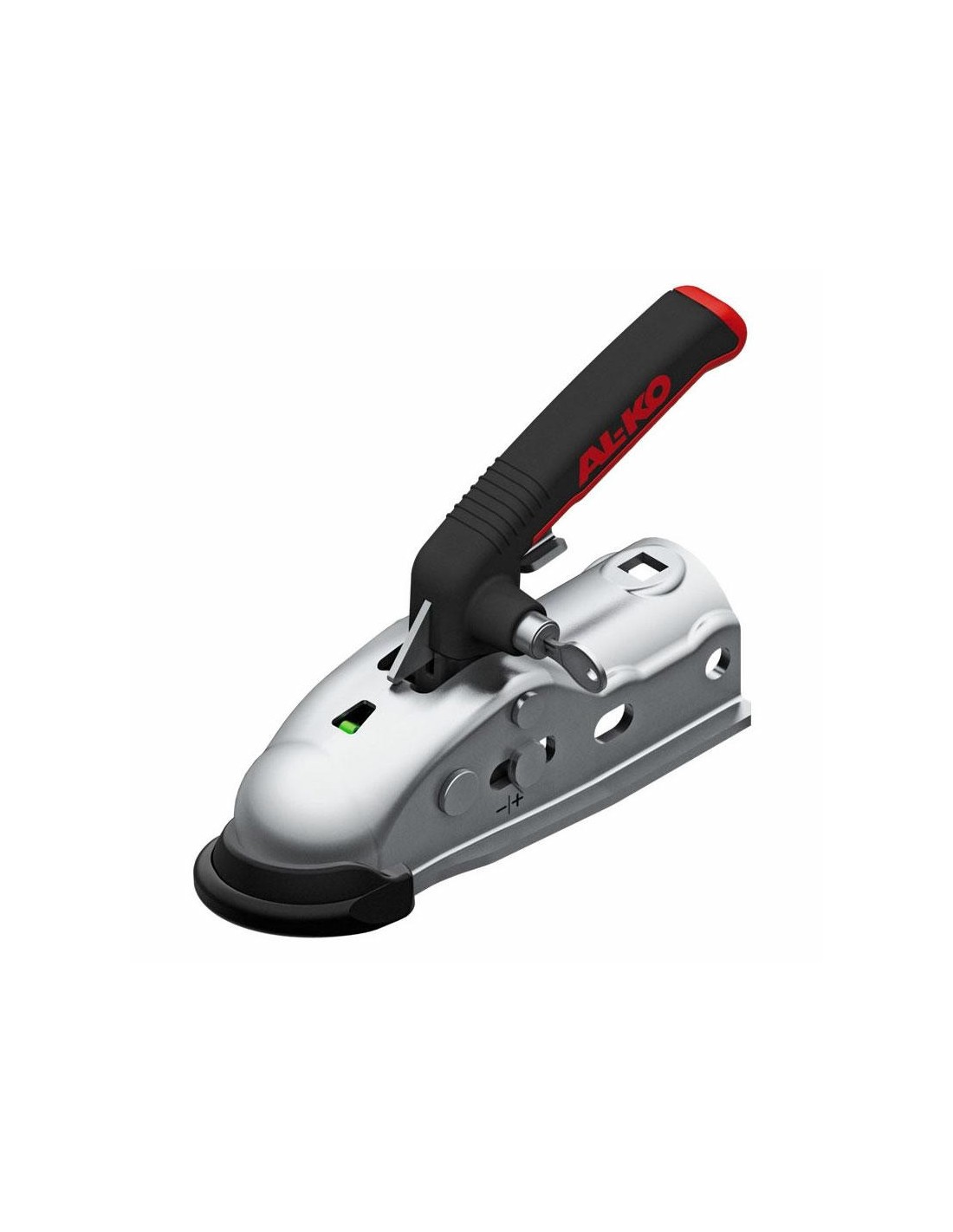 El enganche AK 161 está equipado con el sistema de seguridad de enganche desarrollado por la propia ALKO. En la cabeza de la rótula hay un inserto verde que indica el acoplamiento correcto.
