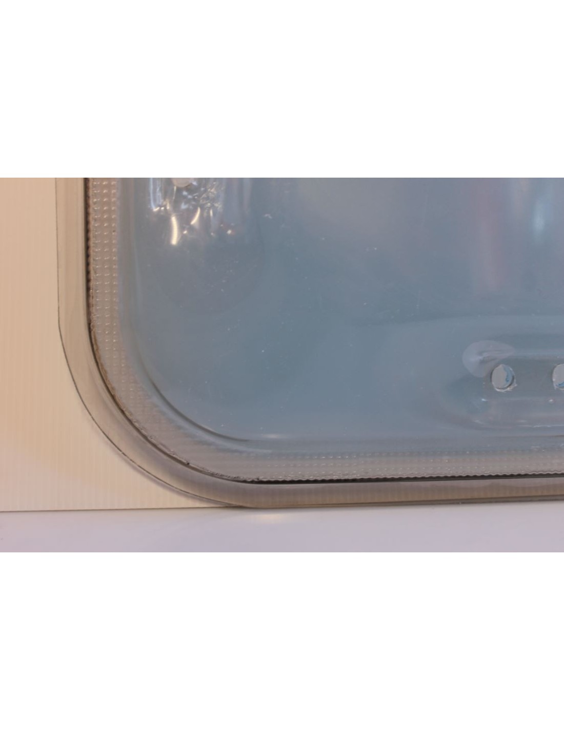 Cristal doble de metacrilato de 3 mm con bisagra de aluminio anodizado de doblez de 2 mm.
