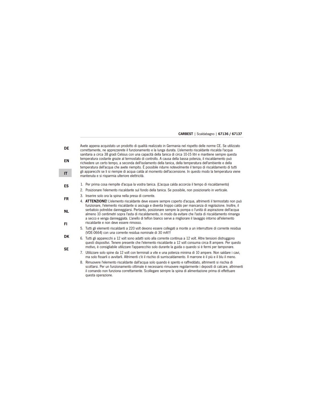 L'élément chauffant chauffe l'eau sanitaire à environ 38 degrés Celsius avec une capacité de réservoir d'environ 10 à 15 litres et maintient toujours cette température constante grâce au thermostat de contrôle.