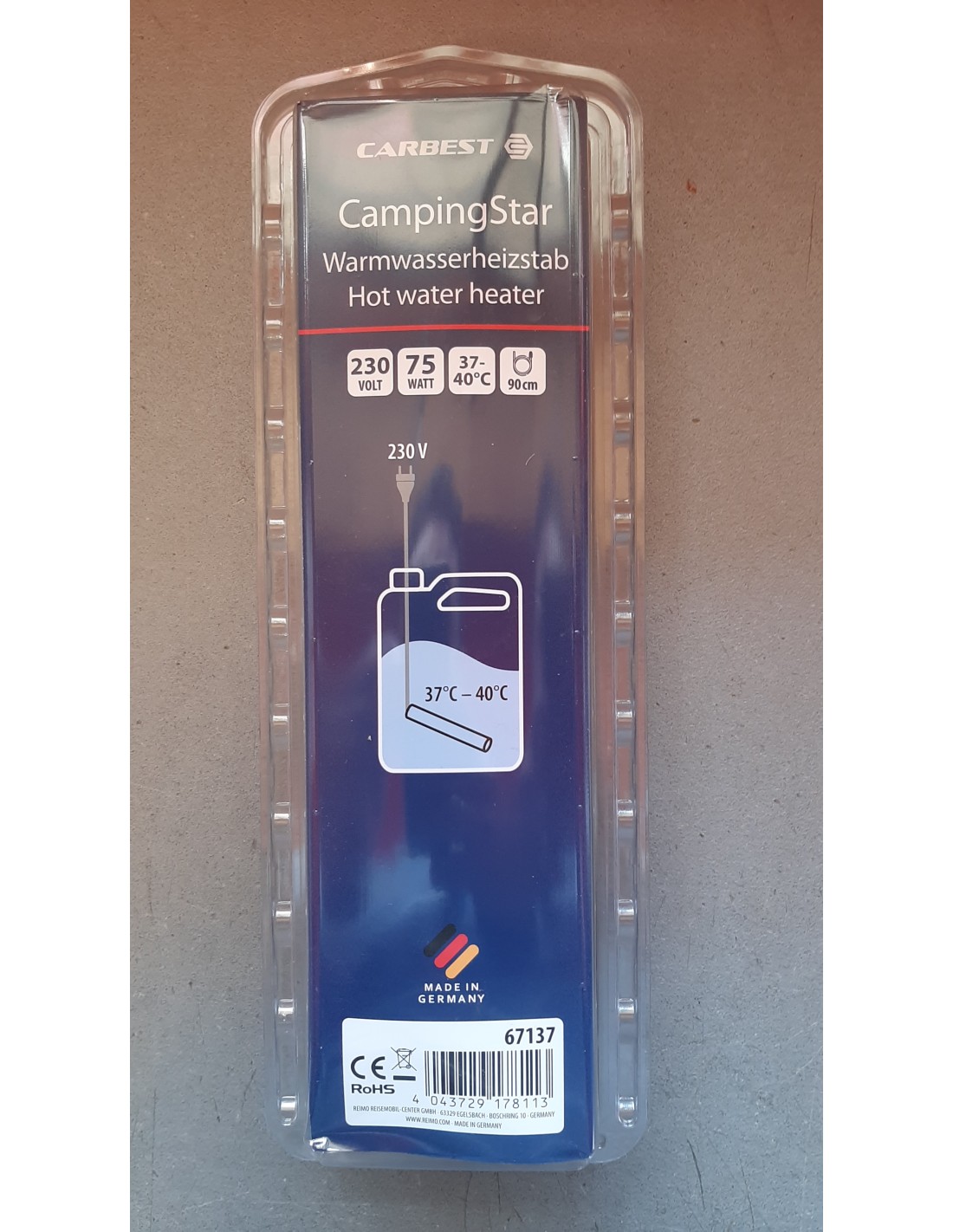 Chauffe-eau électrique Carbest Campingstar 230 V 75 W, température 38 °C.