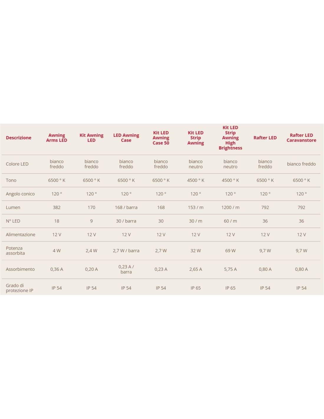 Quatre groupes de feux à LED avec support à coller sur les bras des stores coffres.