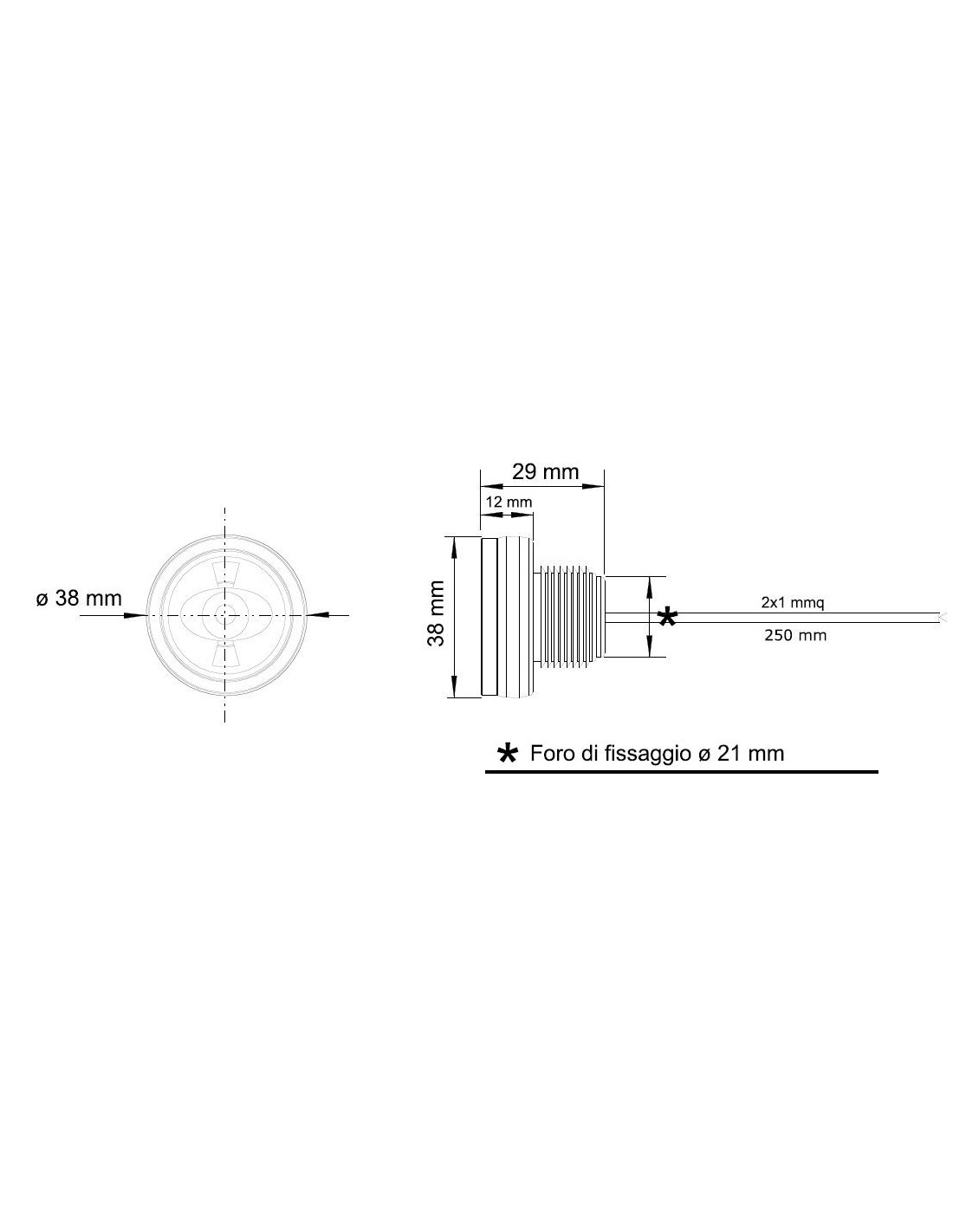 Dimensions et diamètre extérieur 38 mm.