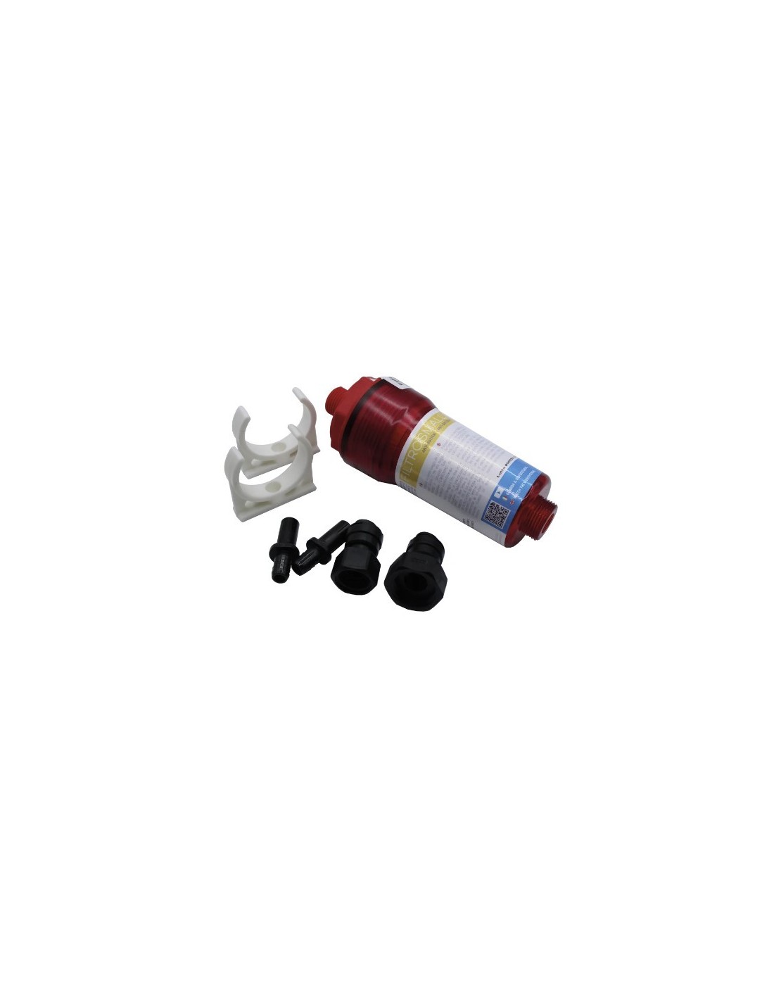 Completo di raccordi per l'installazione e clip di fissaggio.