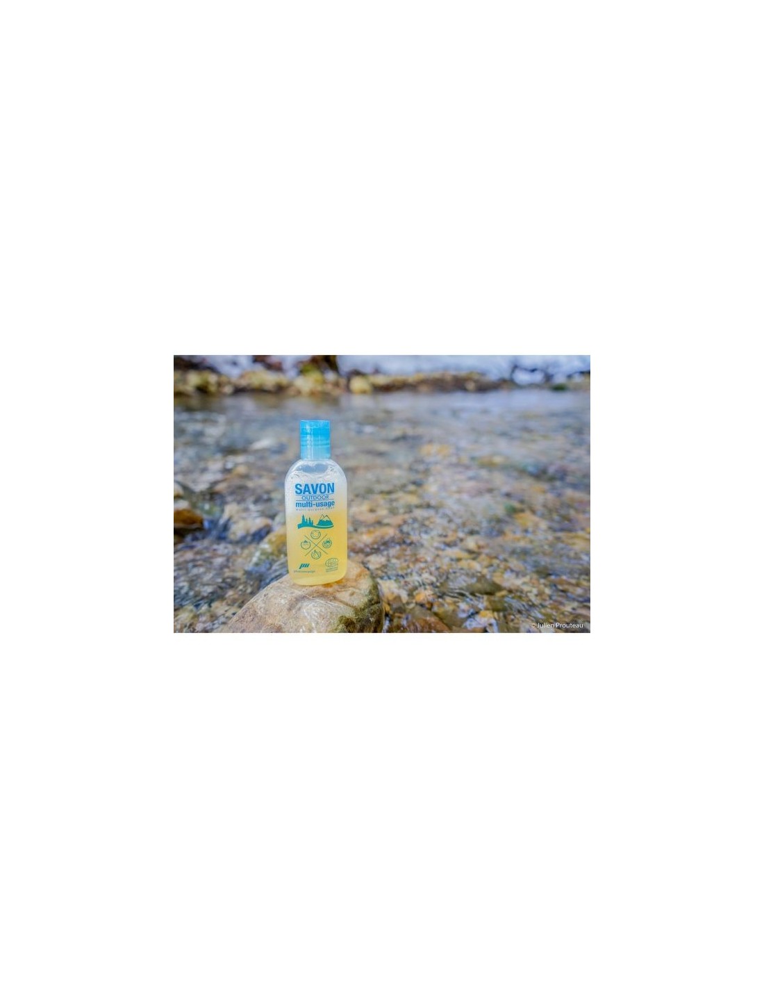 Le savon bio Pharmavoyage est un savon d'extérieur polyvalent, biodégradable et peut donc être utilisé dans la nature sans problème. Une très petite quantité suffit. C'est le compagnon idéal pour la randonnée, le camping ou les voyages et convient pour se laver le corps, les cheveux, les vêtements ou la vaisselle.