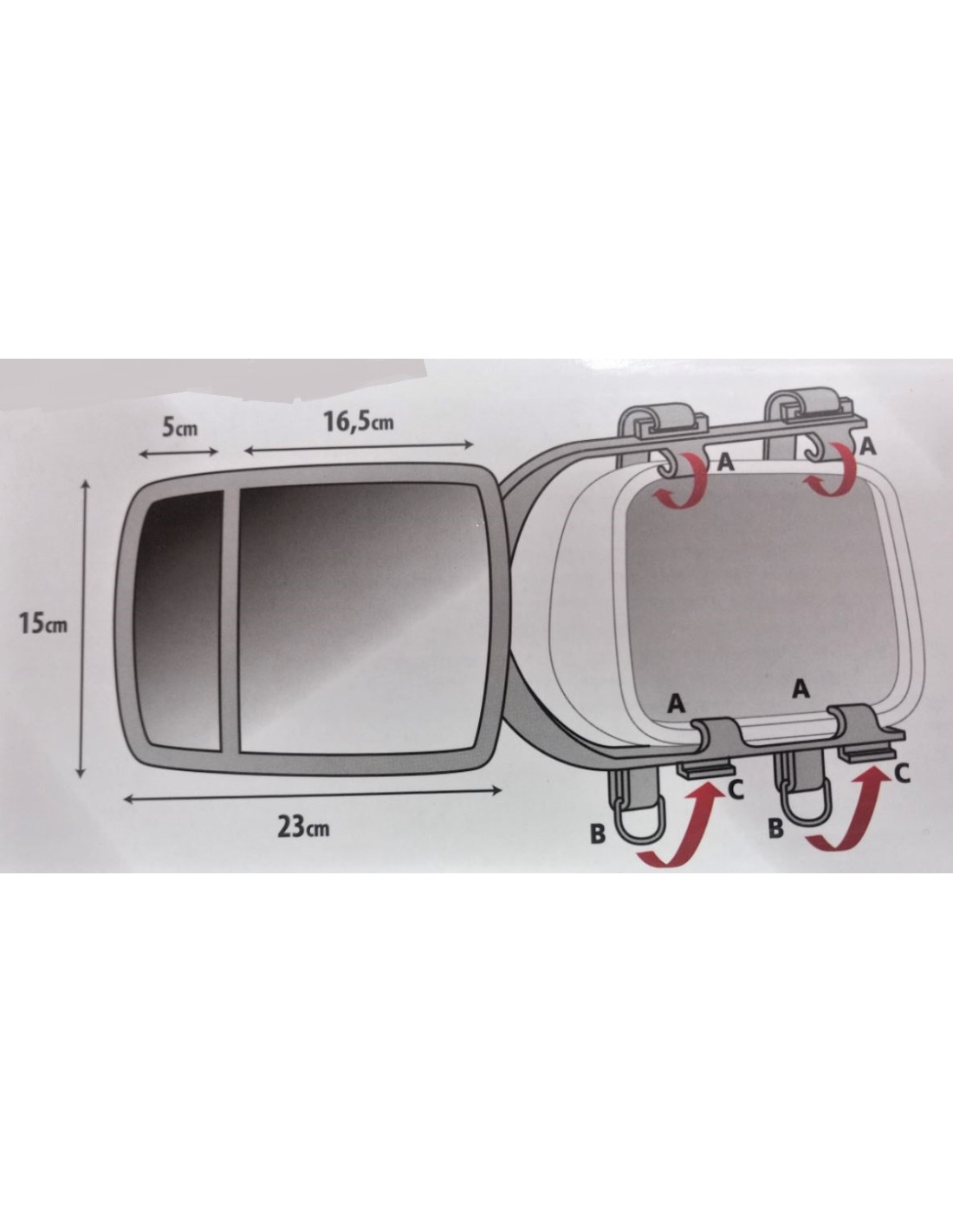 • Miroir 18x13 cm, verre plat sans grand angle, adapté à une utilisation verticale ou horizontale et permet une rotation à 360°