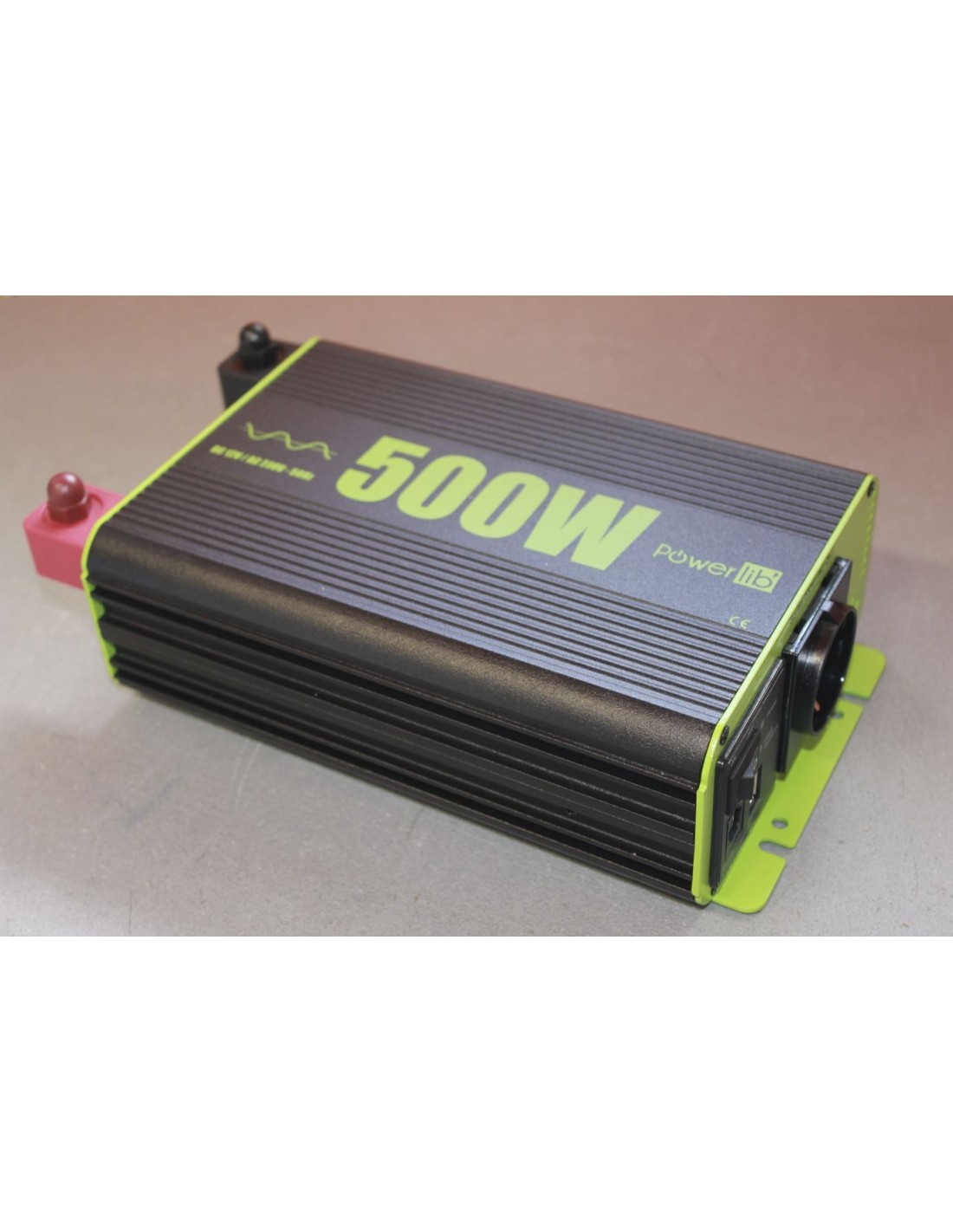 POWERLIB - Onduleur sinusoïdal pur 12 V 500 W avec prise SCHUKO, panneau de commande à distance.