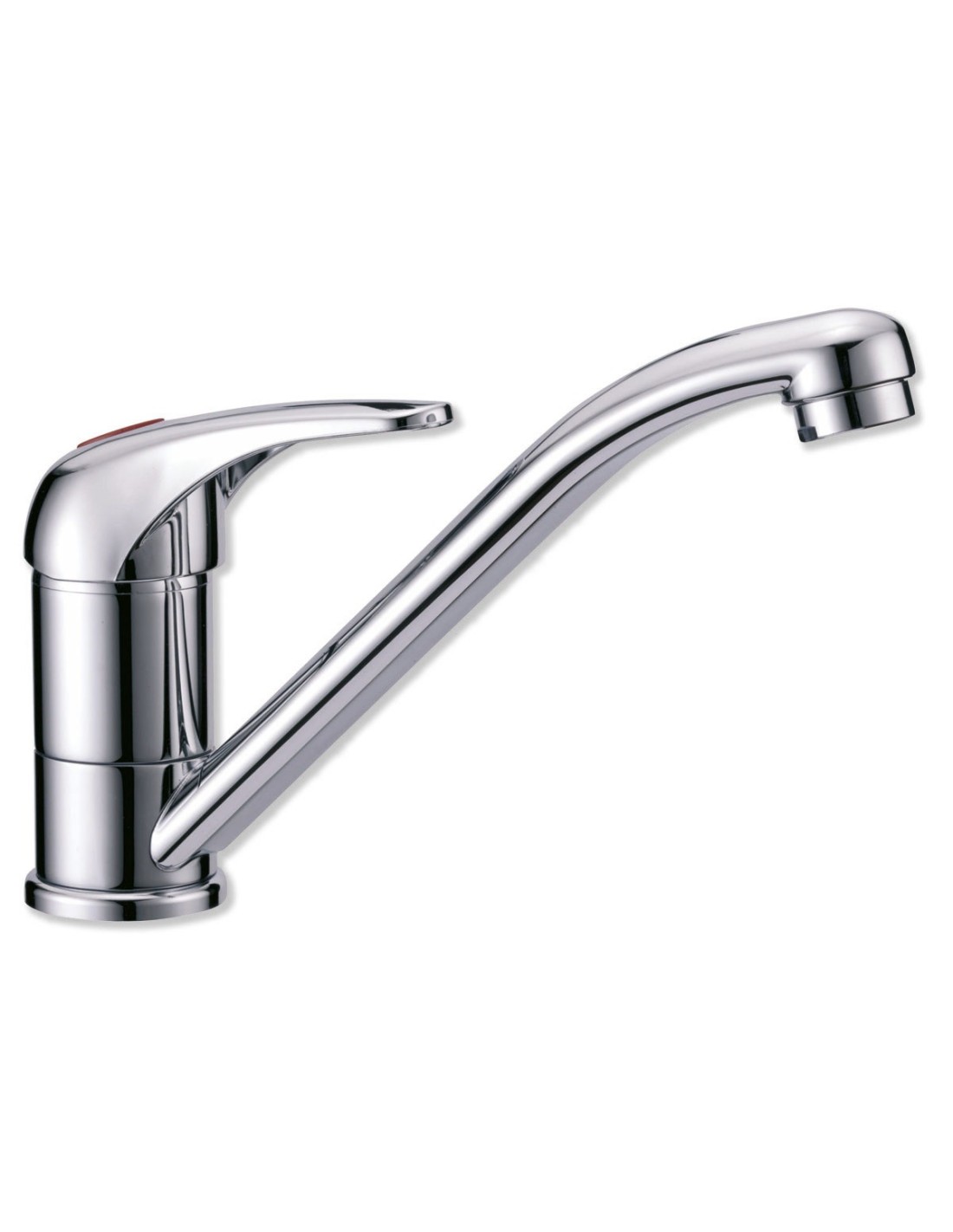 Mitigeur chromé avec bec orientable et cartouche céramique.