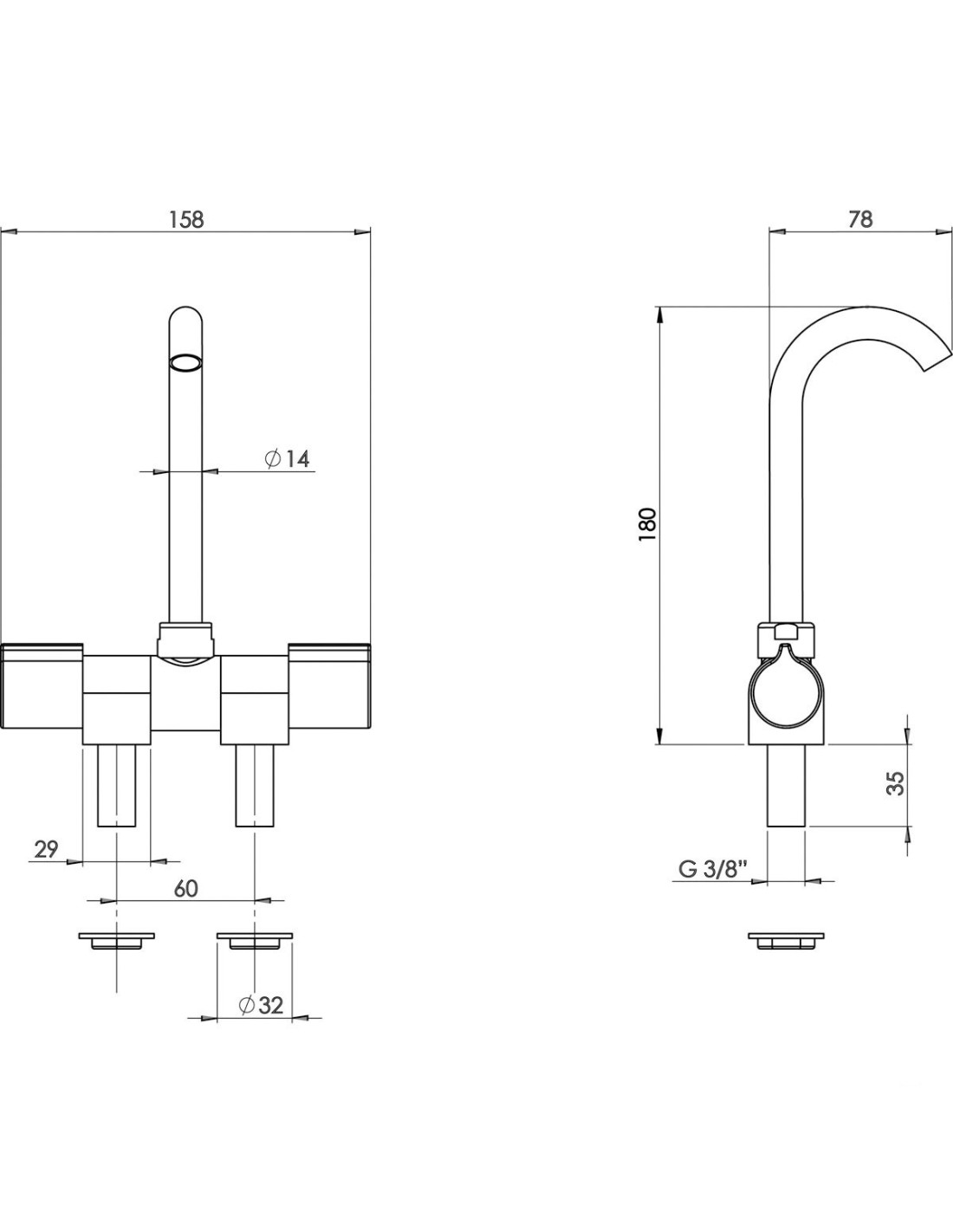 Mitigeur monocommande bec 140 mm raccords femelle 1/2"