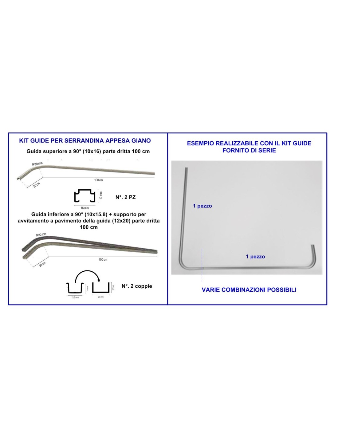 - 2 curve 90° inferiori con parte dritta da 80 cm con adattatore per montaggio a sbalzo