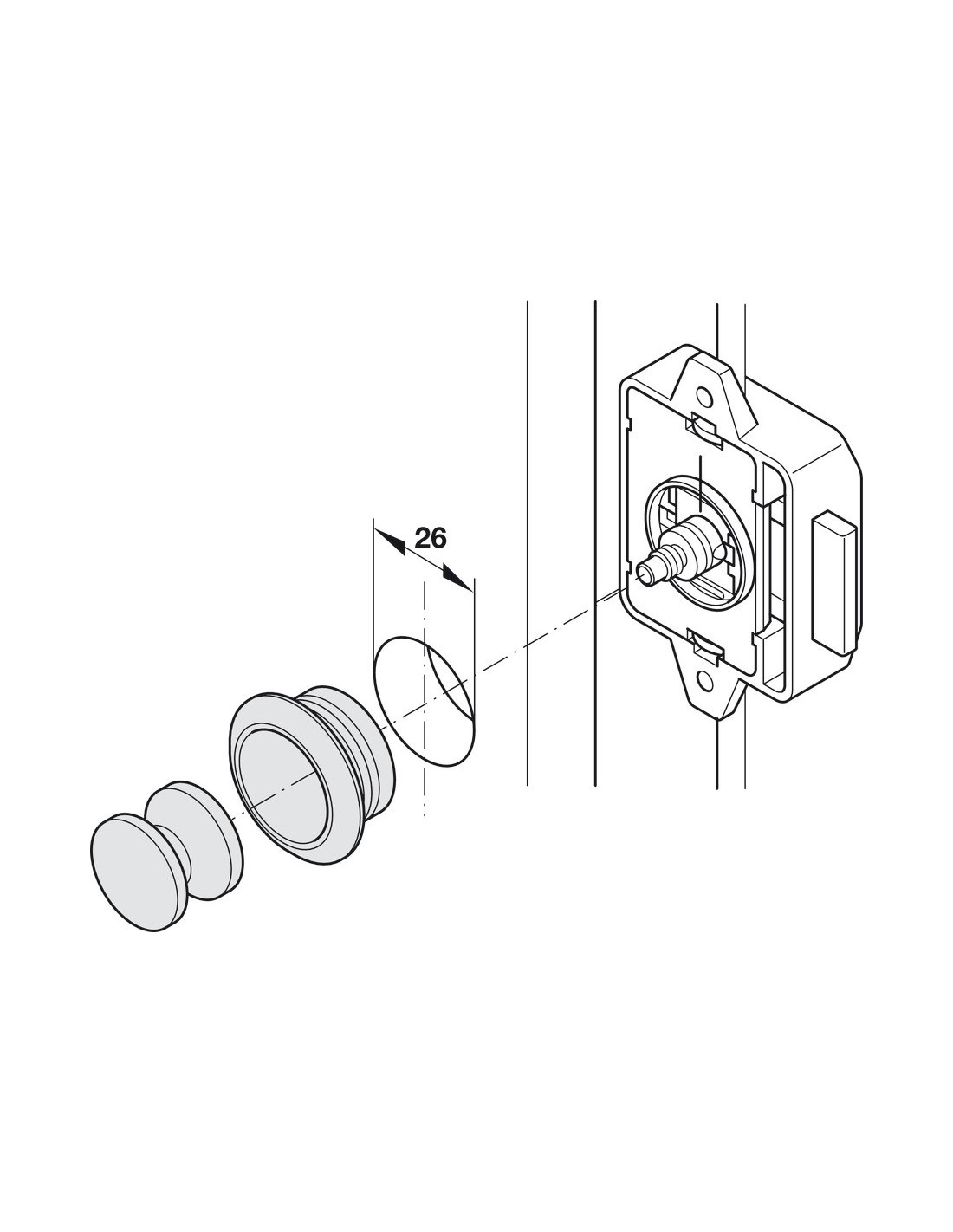 Crochet droit marron pour portes à tringle tournante Push Lock A monter sur les tiges tournantes
