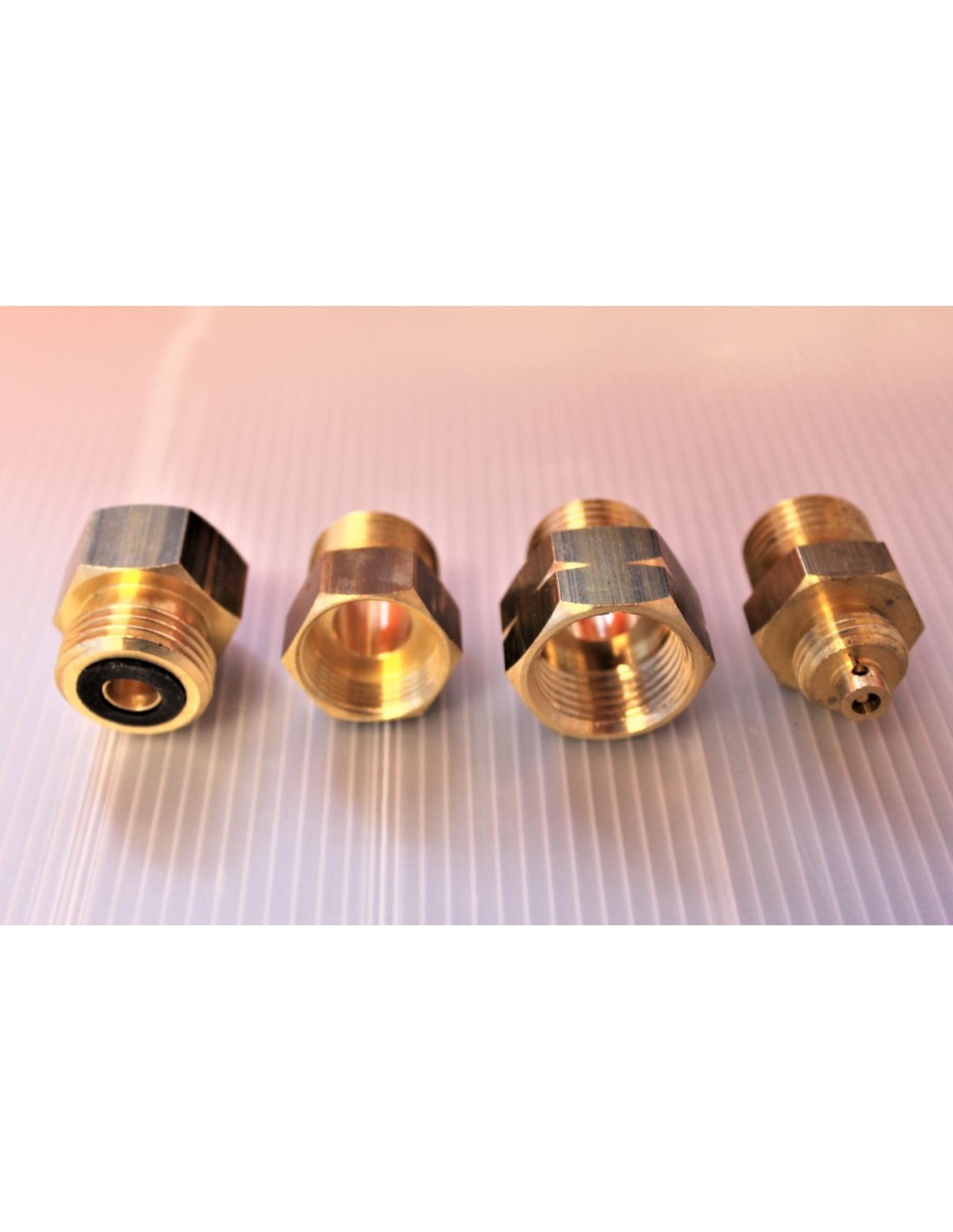 4. Mâle ITALIA - mâle CAMPINGAZ (voir photo du raccord monté sur la bouteille bleue, qui transforme la connexion Campingaz en mâle ITALIA comme une bouteille italienne normale. Il est utilisé pour remplir les bouteilles Campingaz en Italie ou pour les adapter à votre propre système italien sur le camping-car).