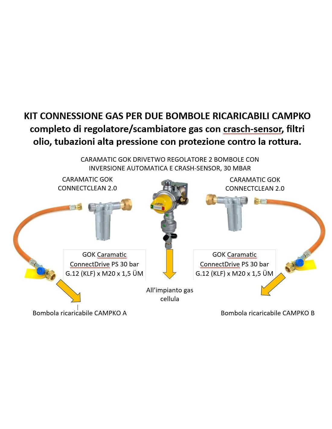 GOK - SET CARAMATIC DRIVE DEUX VERTICAUX - KIT DE RACCORDEMENT GAZ 45 CM POUR DEUX BOUTEILLES CAMPKO RECHARGEABLES - filtres, tu
