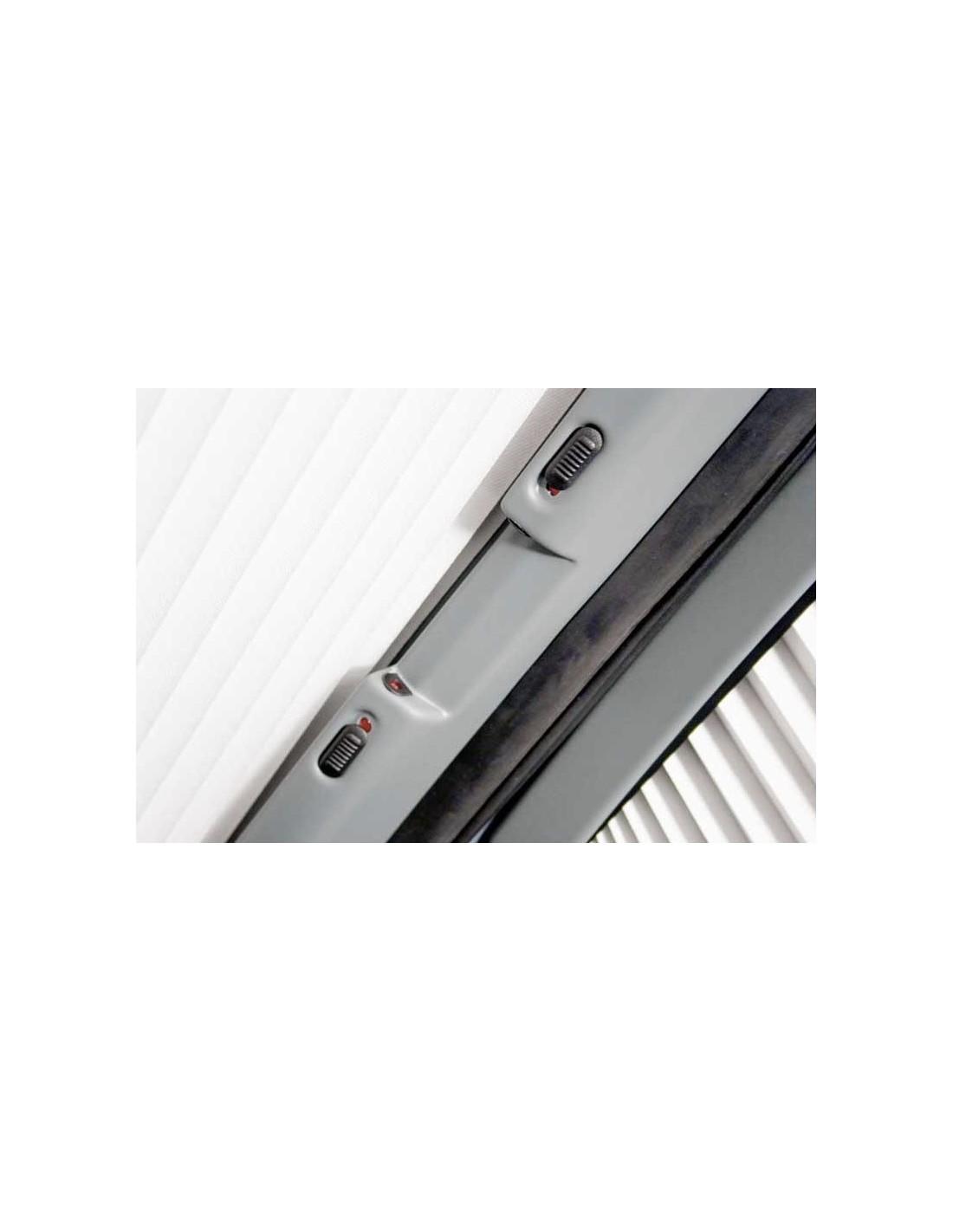 Une fois fermé, le rideau occultant est caché par un profil et devient presque invisible. De plus, le rideau occultant avant est équipé d’un système de verrouillage de sécurité qui empêche l’ouverture frontale par accident pendant la conduite.