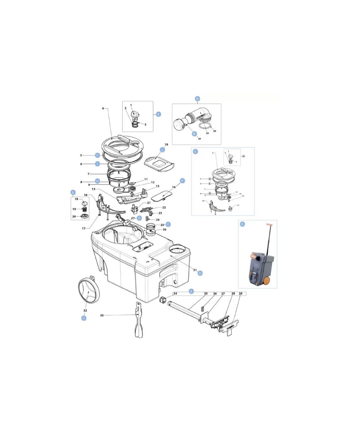 Flotteur de réservoir pour C250/C260 Thetford - 50725 Correspond au point 27 du dessin ci-joint
