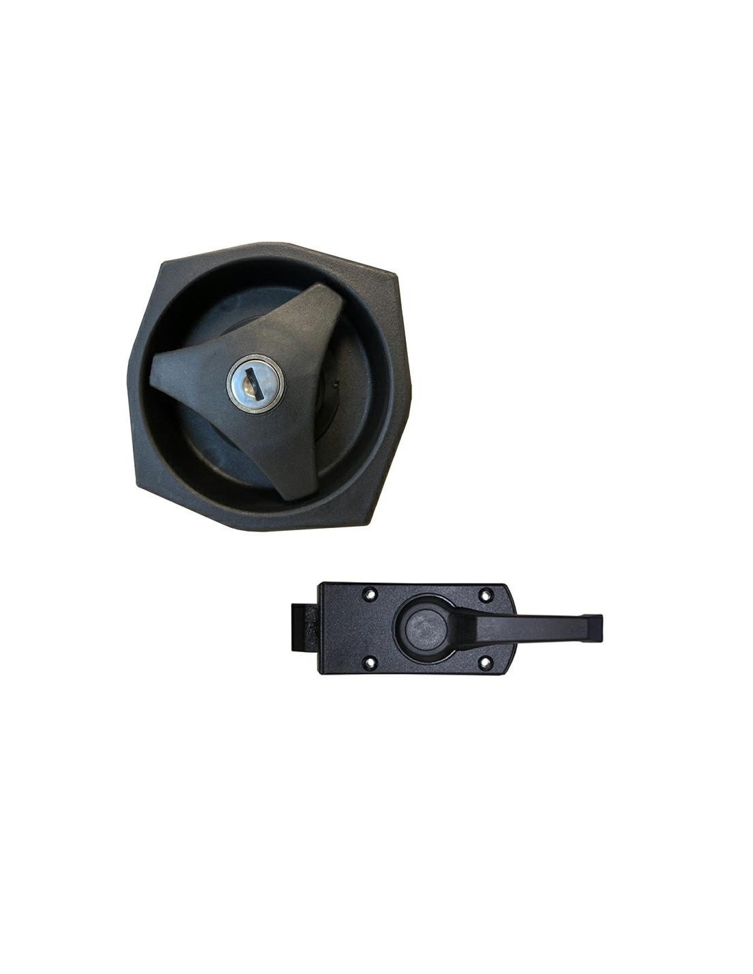 Série FAP 1033, serrure de porte de cellule série EUROPA, équipée d'un mécanisme à levier interne avec cylindre et clés traditionnelles. Partie extérieure 103310HZ51PE Partie interne 1006A551PI Distances des trous : 64 x 38 mm. Dimensions extérieures : 56 x 120 mm