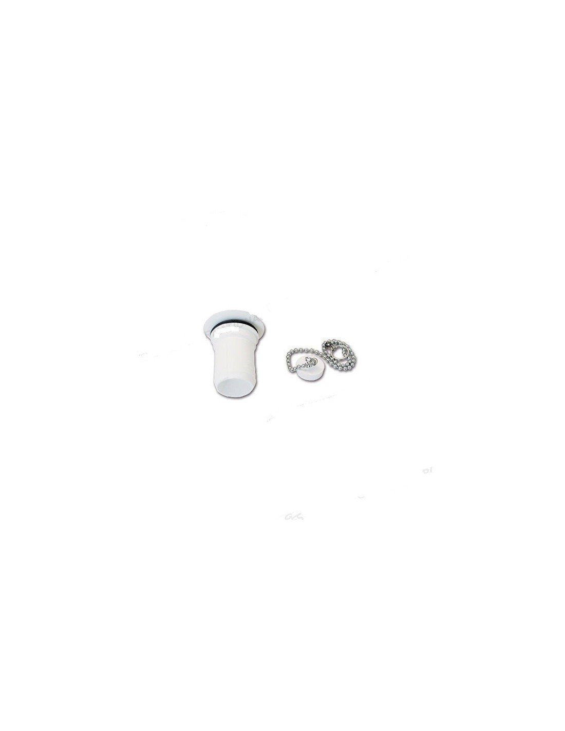 Drain de SALLE DE BAIN 30 mm - droit - PG 25 mm - complet avec bouchon et chaîne. Matière plastique blanche