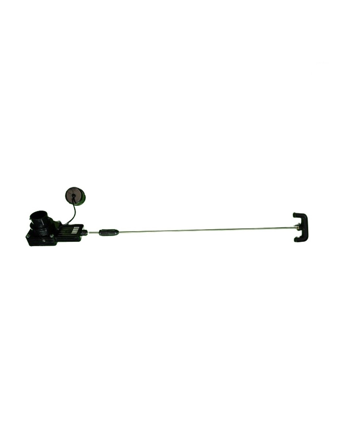 FAP 1.5 inch grey water drain valve 9039DCTR05 curved extension TRIGANO One side smooth and the other with a non-threaded flange diameter 48/40 mm. Removable handle and shortenable rod. Rod dimensions: 32 cm handle side + 9 cm inclined side + 12 cm valve side. Total 53 cm from under the handle to the top of the valve body. Offset approximately 11 cm.