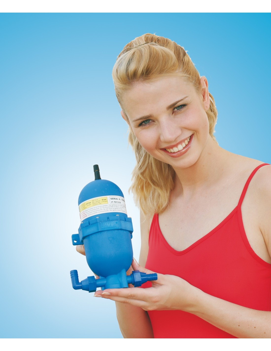 It is preloaded at 0.9 bar (13 psi), but can be charged via the appropriate valve with a normal compressor, to be adapted to all pumps on the market.