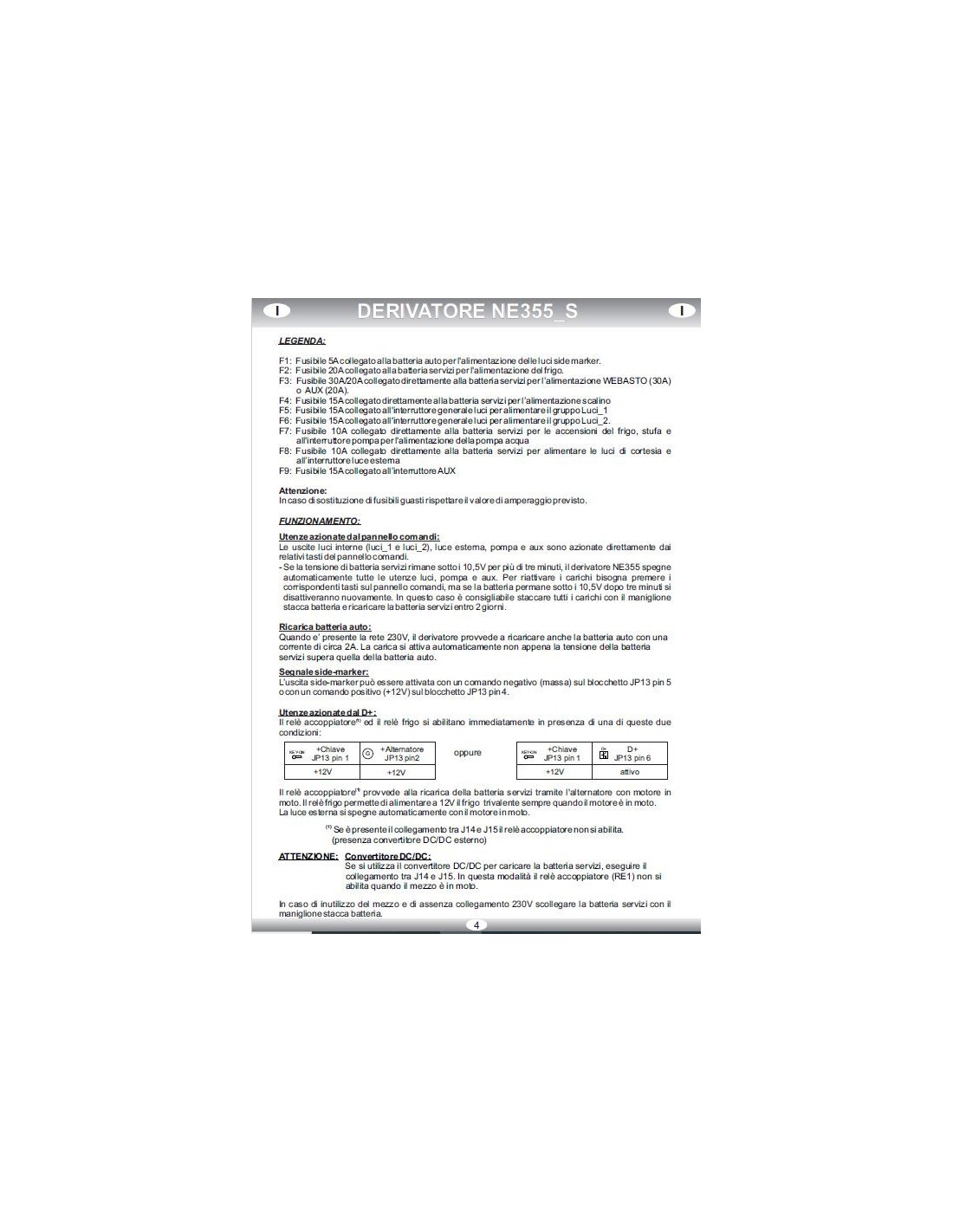Also worth mentioning is the new NE325 DC/DC converter from Nordelettronica which is a key addition to the above, available in 25A and 40A power versions (the latter also recommended for powering the refrigerator), so as to allow connection to vehicles with smart alternators; the DC/DC also has the ability, like the NE287 charger, to control the output