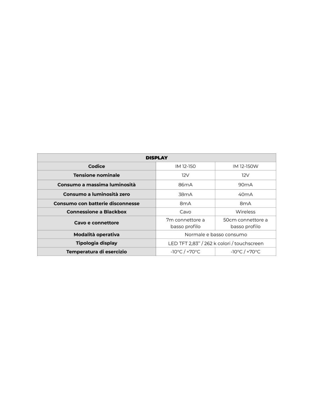 • Connessione BlackBox/Display disponibile sia via cavo (cod. iM 12-150) che wireless (cod. iM 12-150W).