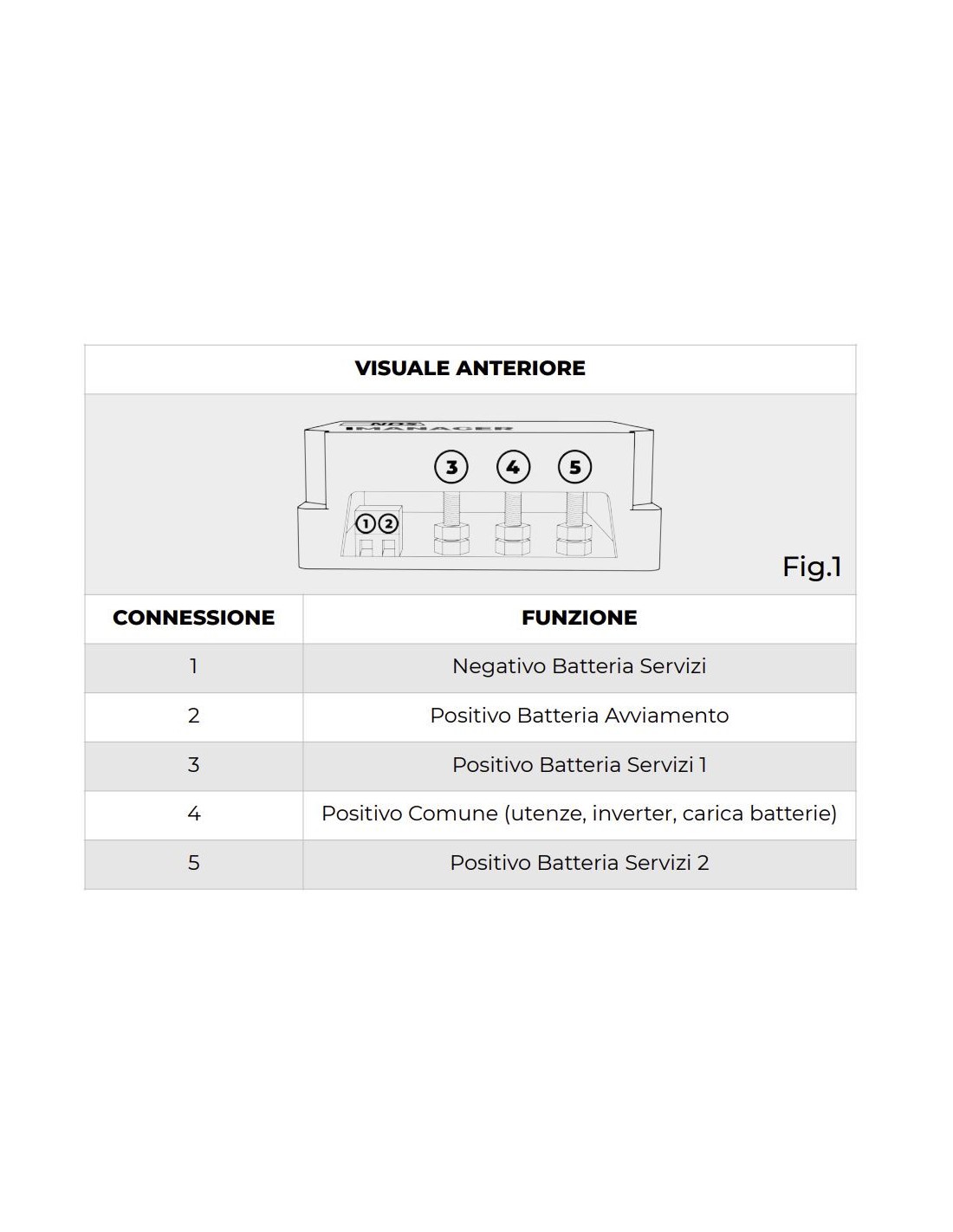 iMANAGER ha inoltre un’uscita dedicata alla batteria motore; il sistema quando rileva una fonte di ricarica (caricabatterie di rete o pannello solare) sulle batterie servizio e quest’ultime sono cariche al 100%, provvede ad inviare alla batteria motore una corrente di massimo 4A per mantenerla carica, evitando così brutte sorprese nella ripartenza dalle lunghe soste.