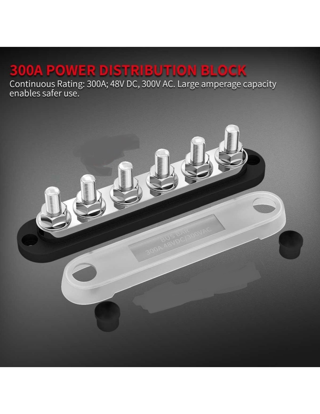 The rated current of the busbar is 300A, and the DC voltage is up to 48V, and it is suitable for the DC power system of cars, RVs, yachts, and the like.