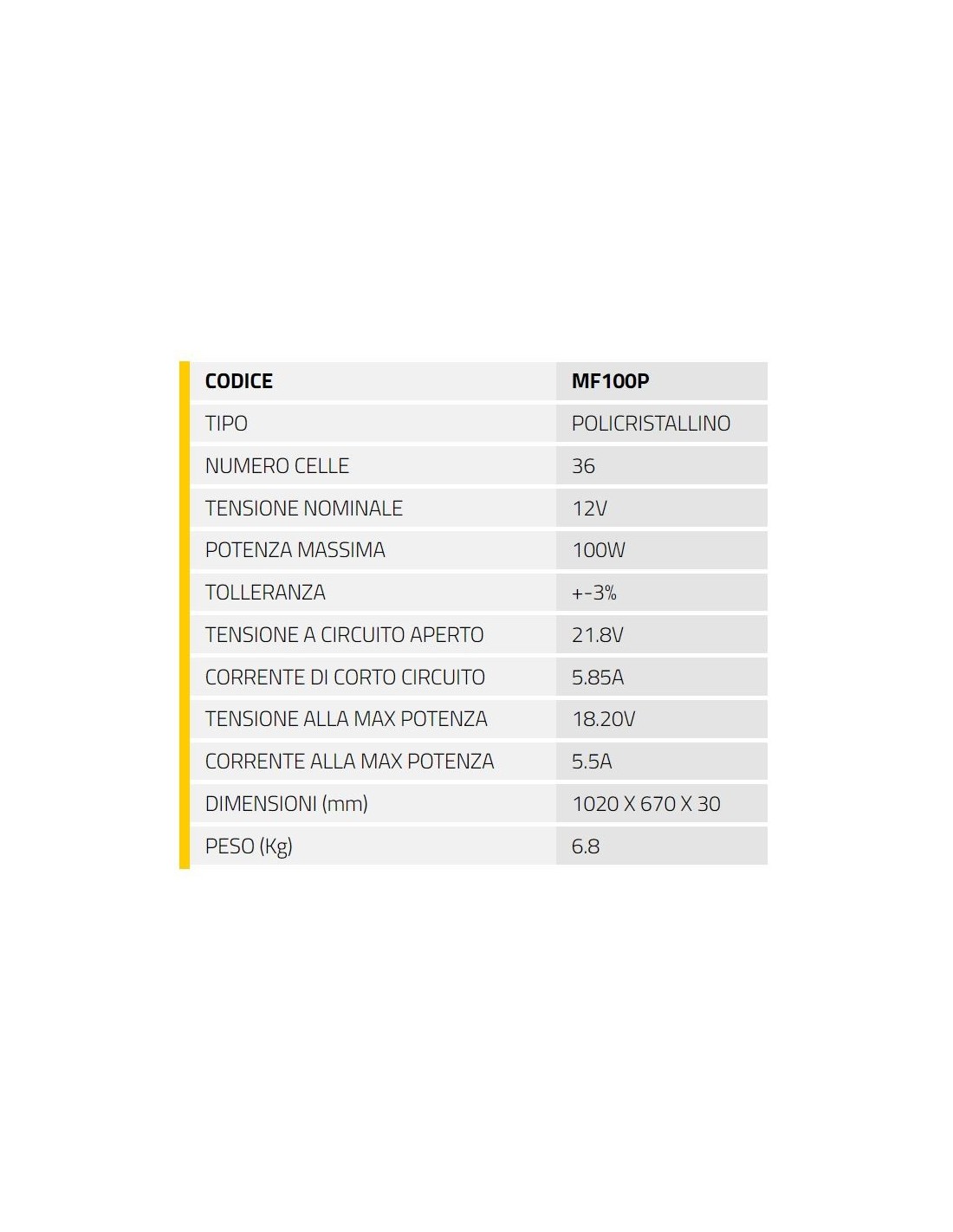- MF100 monocrystalline photovoltaic panel with 32 cells - 1020x670x30 mm with junction box and diodes