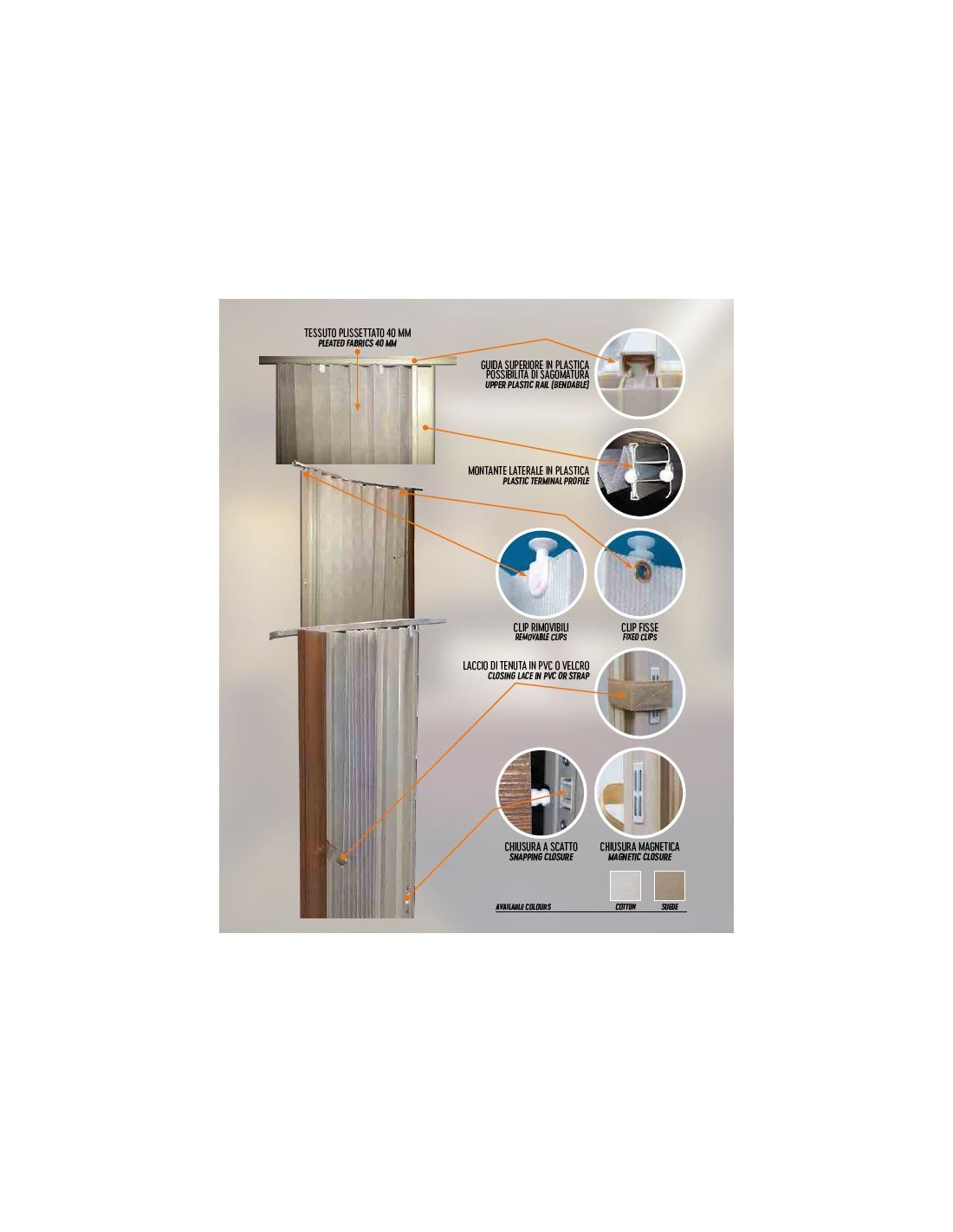 The separators have a standard size of 190 x 100 cm and are supplied complete with a plastic top guide, removable clips, magnetic closure and sealing strap.