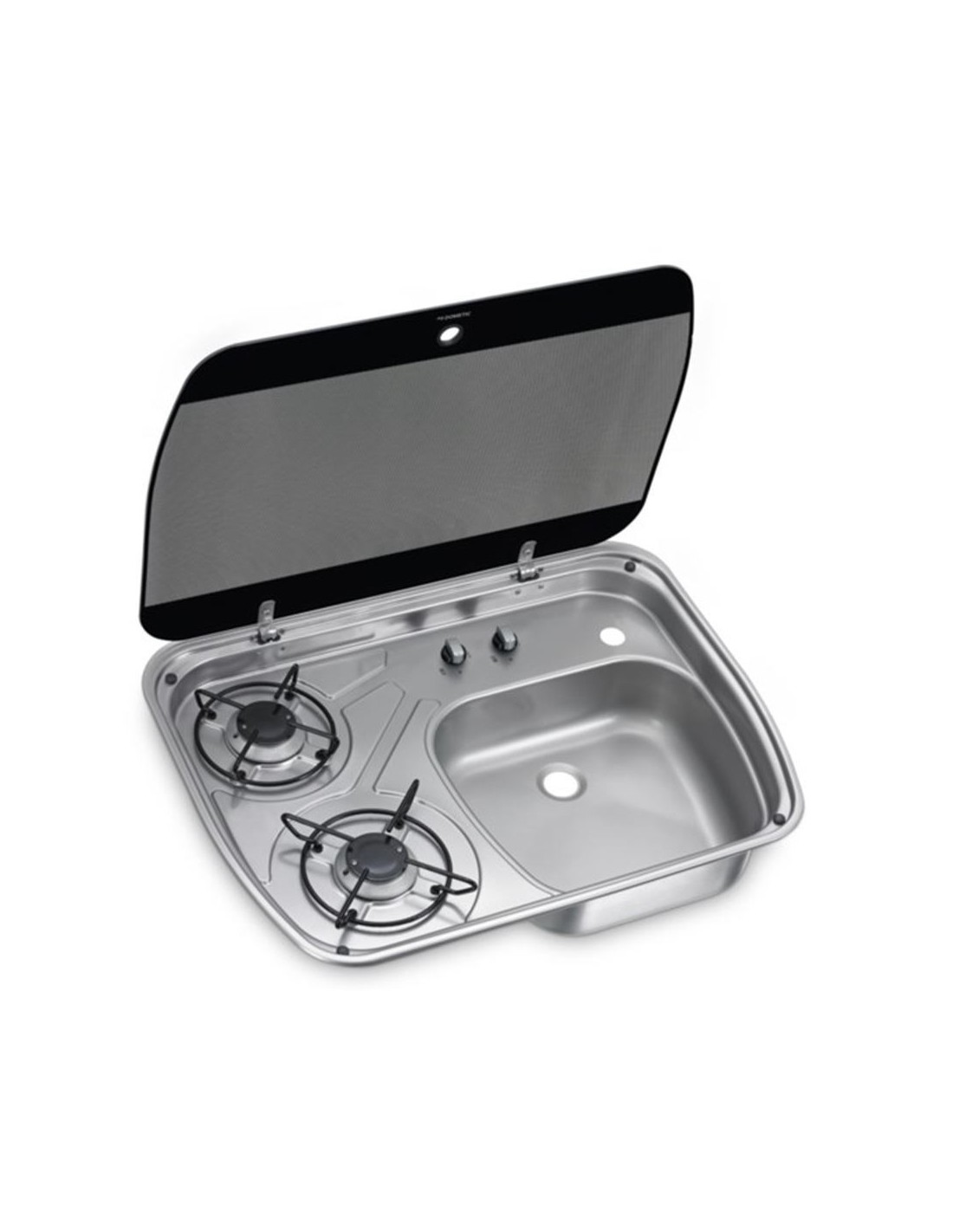 Combinazione piano cottura a 2 fuochi / lavello con coperchio in vetro