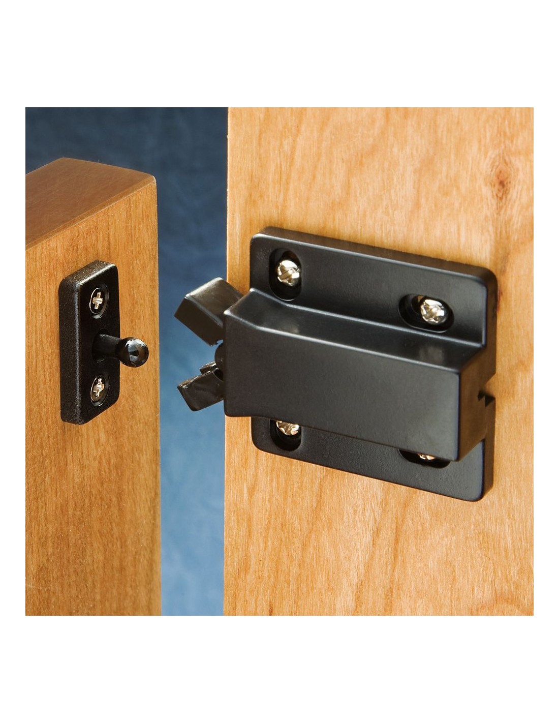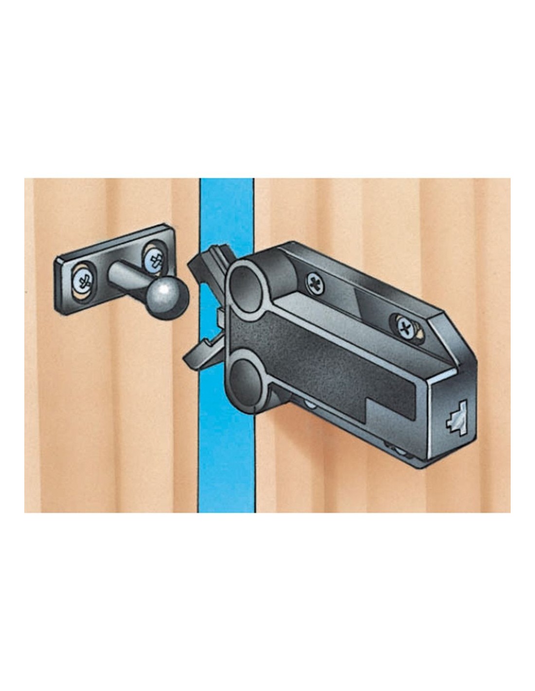 Push-to-close mechanism for doors without handle, simply press on the door near the closure to close and open the door.