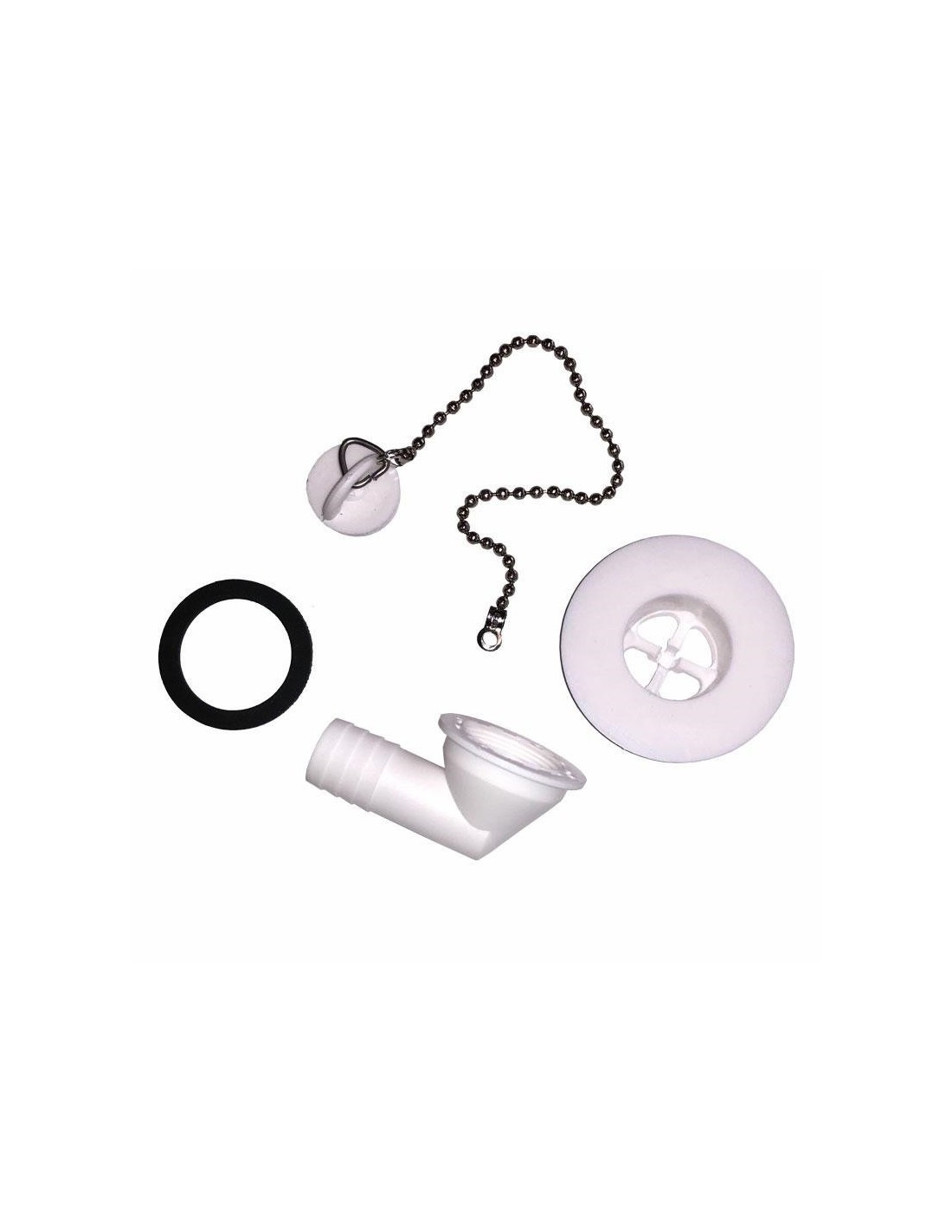 BATHROOM drain. 30 mm - curved - PG Ø 20 mm with cap and chain.