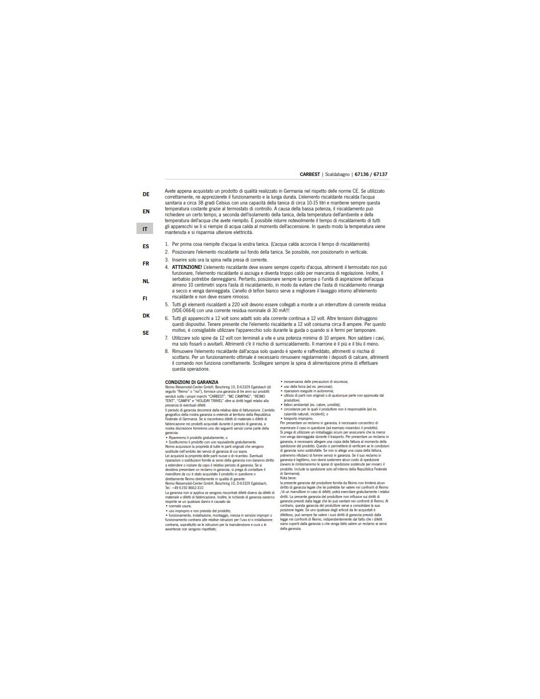 The heating element heats the sanitary water to about 38 degrees Celsius with a tank capacity of about 10-15 litres and always maintains this constant temperature thanks to the control thermostat.