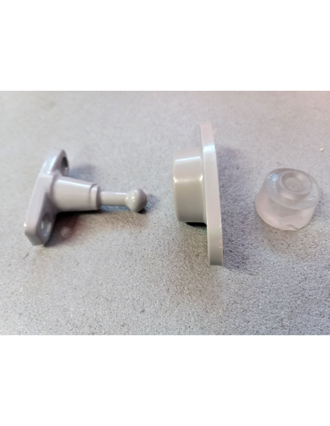 Black half-moon door stop with striker for door or locker Fixing with screws not supplied in the package. Distance between male holes 60 mm Distance between female holes 44 mm