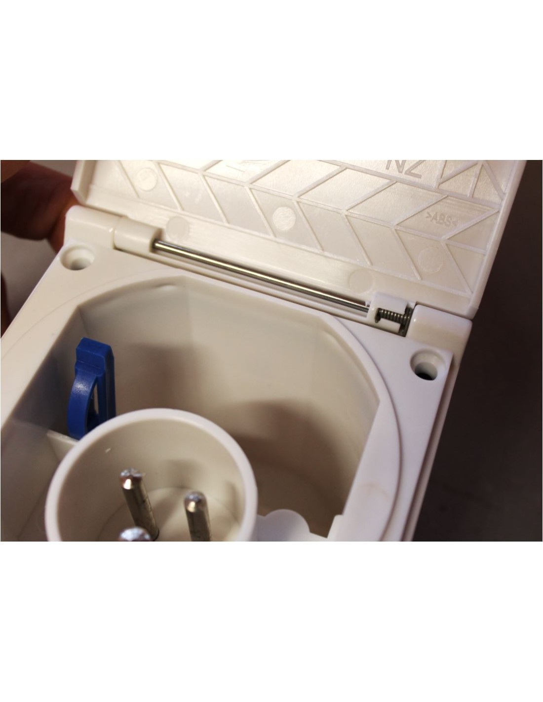 Fixed 16 A plug with hinged lid.