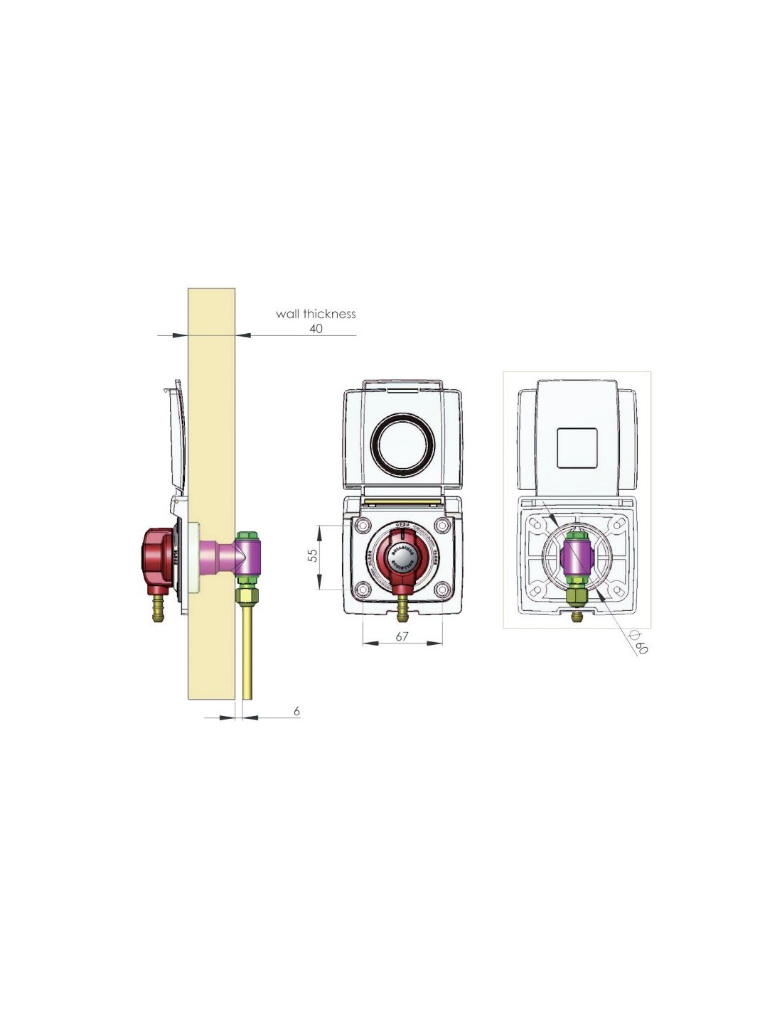 Hole for installation: Ø 60 mm.